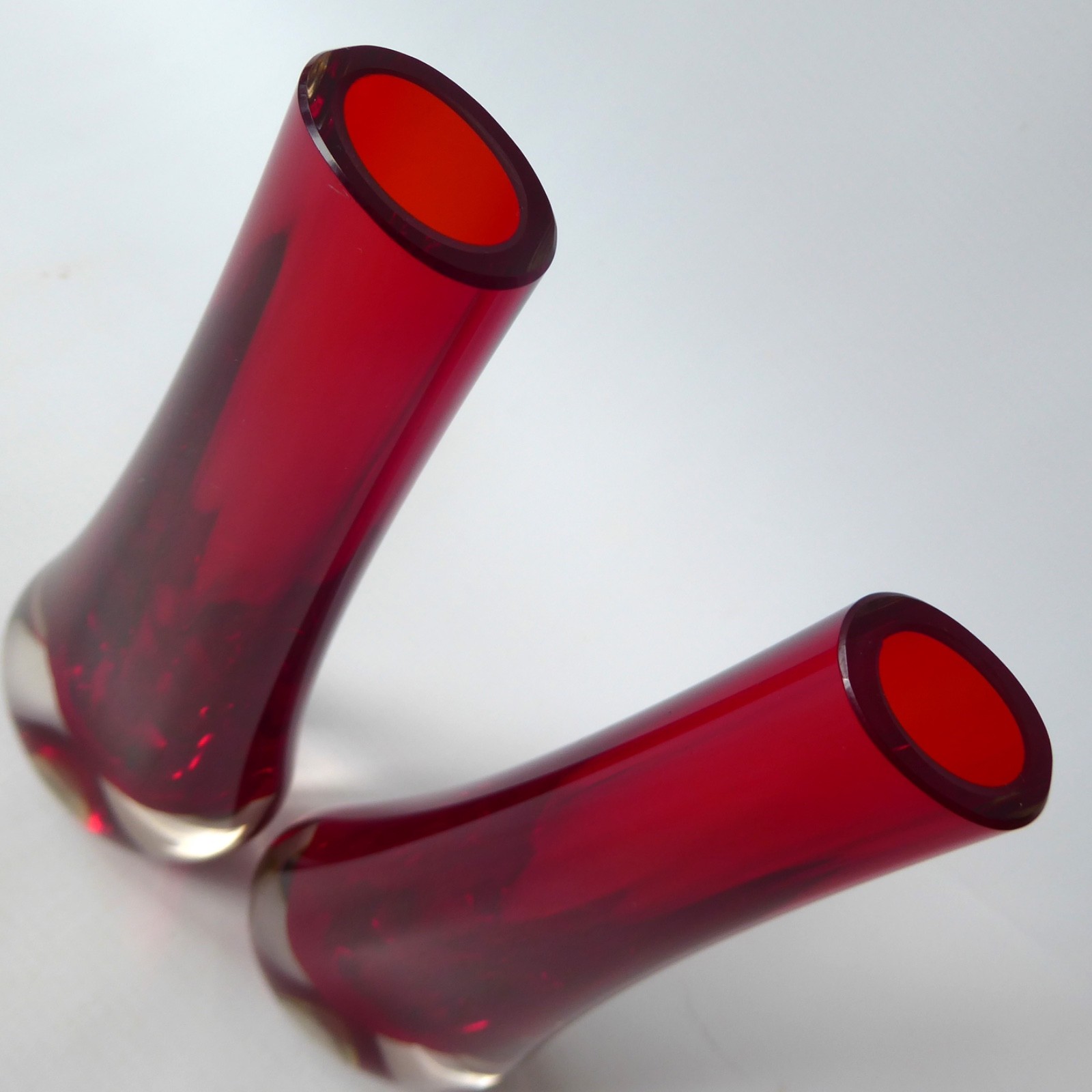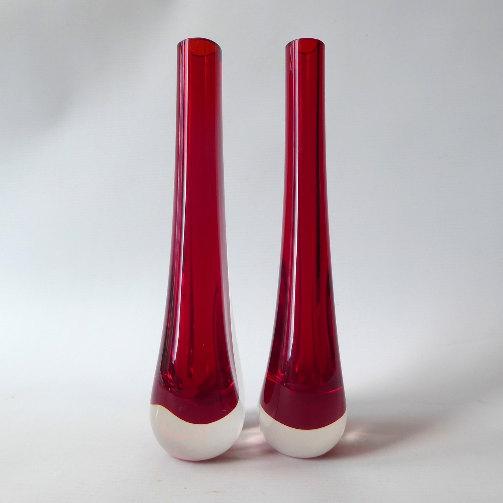 A matching pair of vintage Whitefriars bud vases designed by Geoffery Baxter in 1961, England.