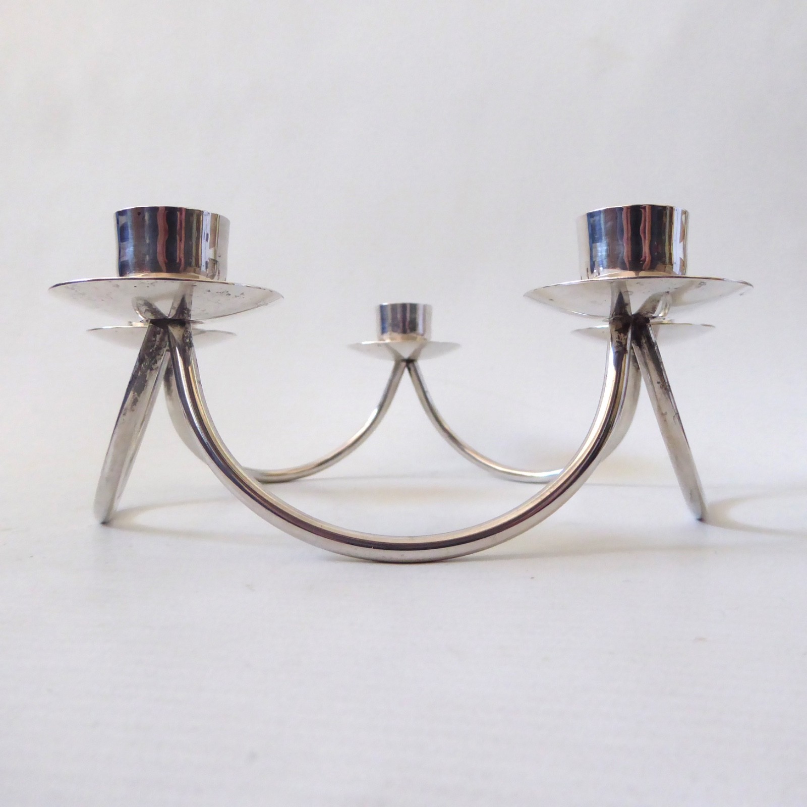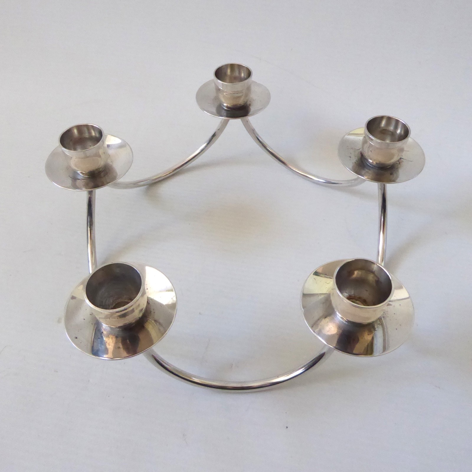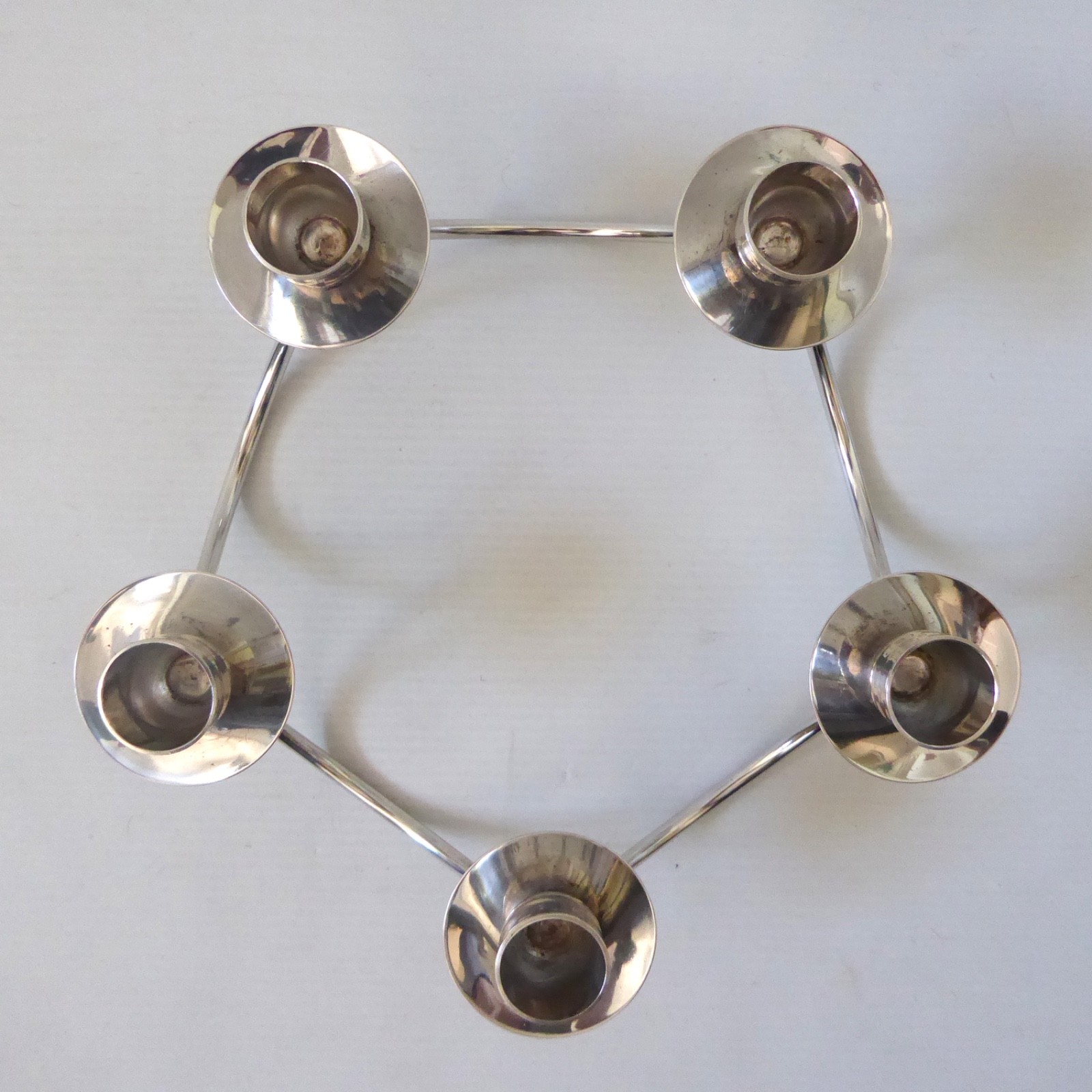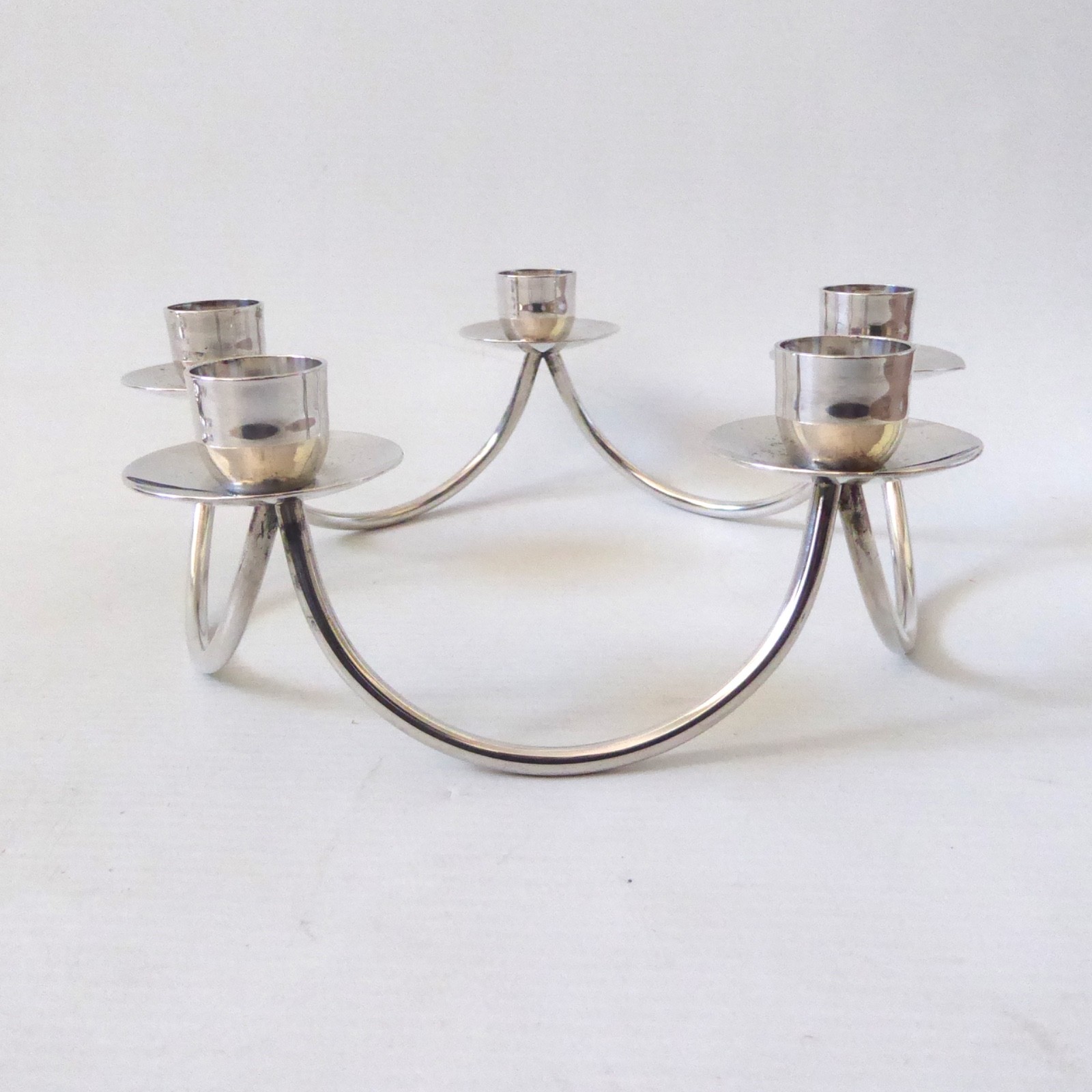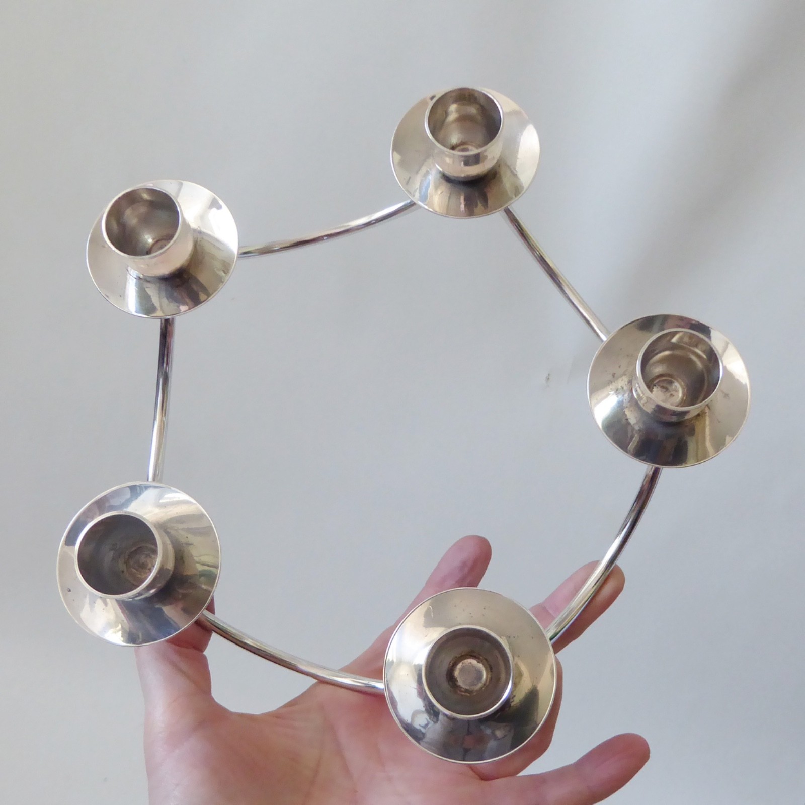 Berg Denmark silver plated modernist candle holder, 5 dinner candles, vintage