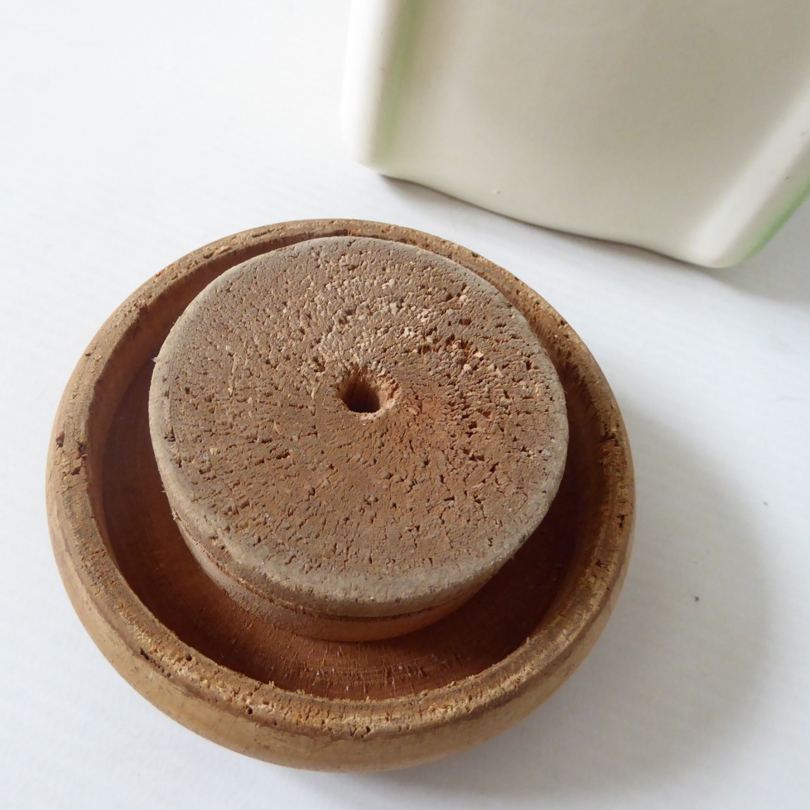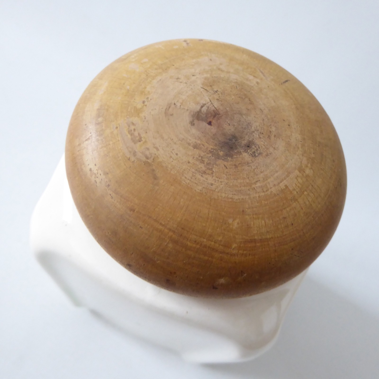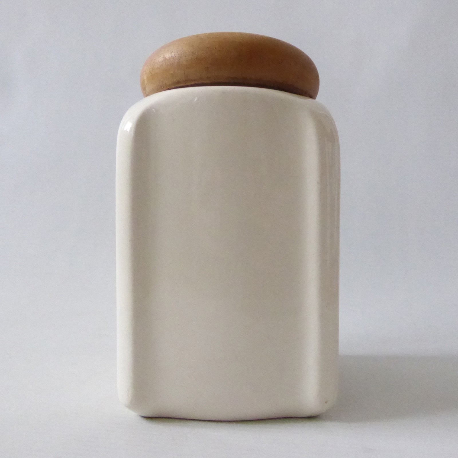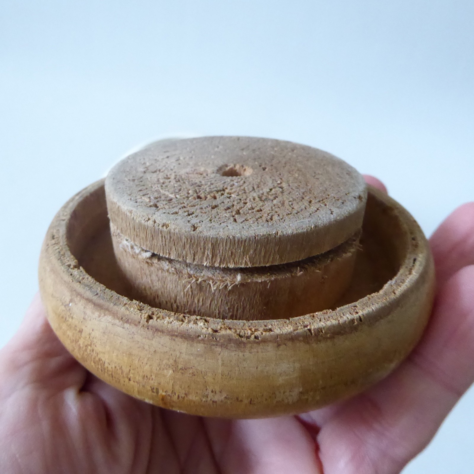 Blond wood prise off lid – no inner seal so it doesn’t seal.