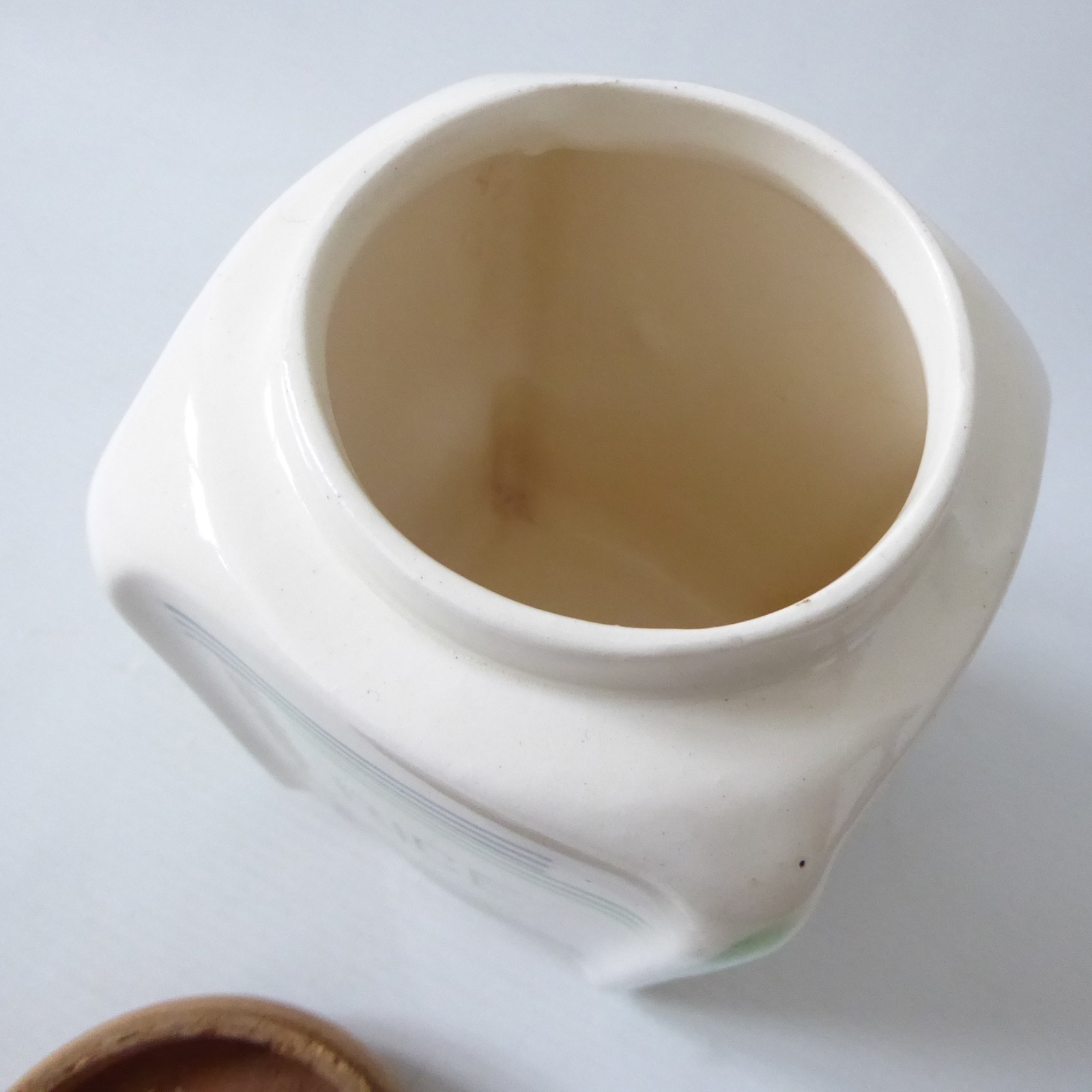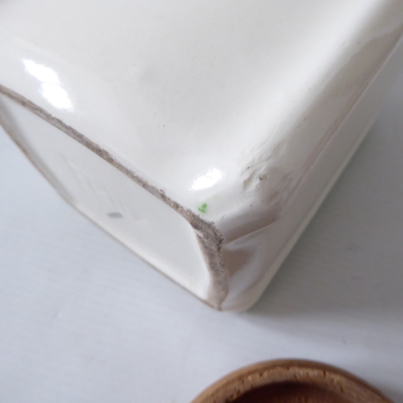 No obvious chips or crazing or cracks, though I wouldn’t store liquid in it being an old ceramic.