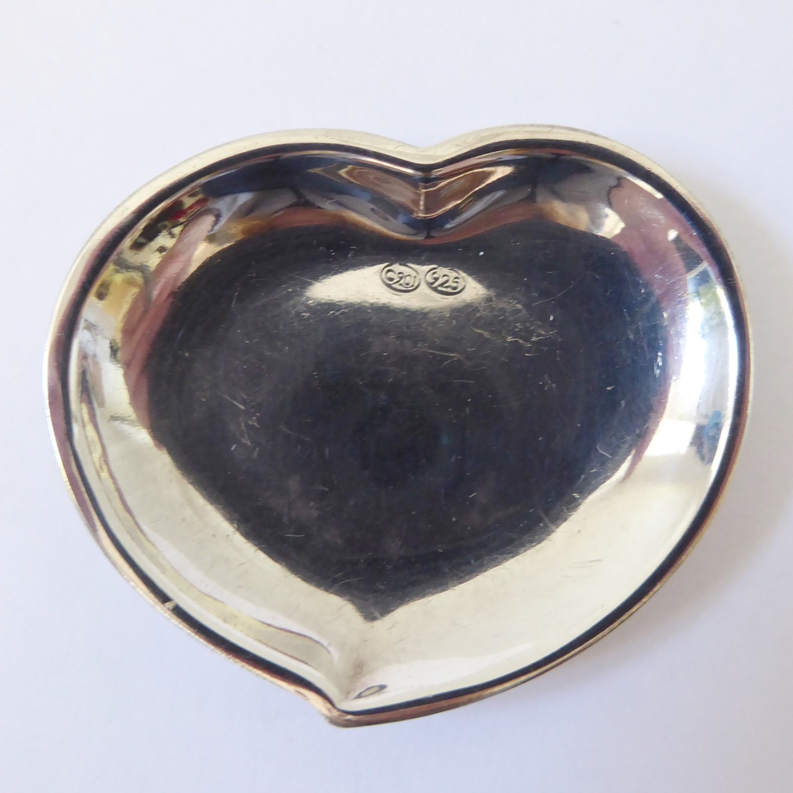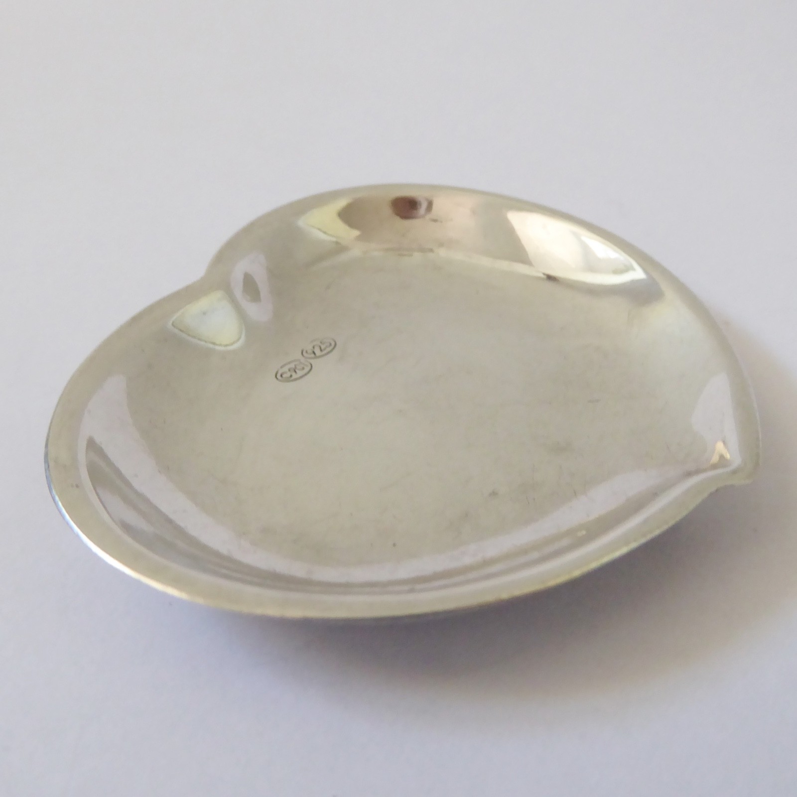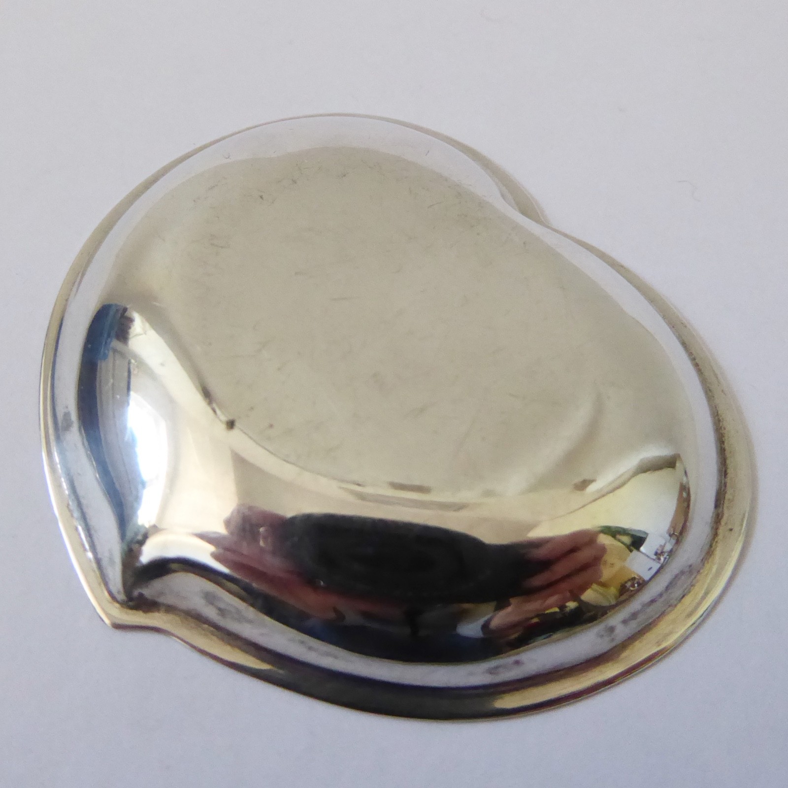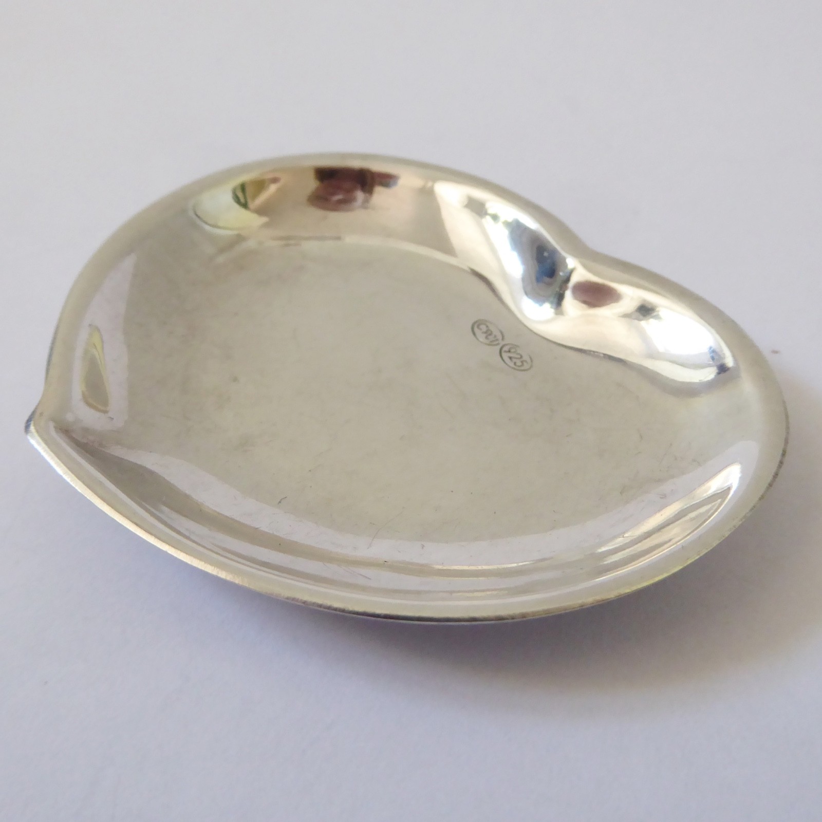 A small and shallow heart shaped silver dish, ideal as a gift.