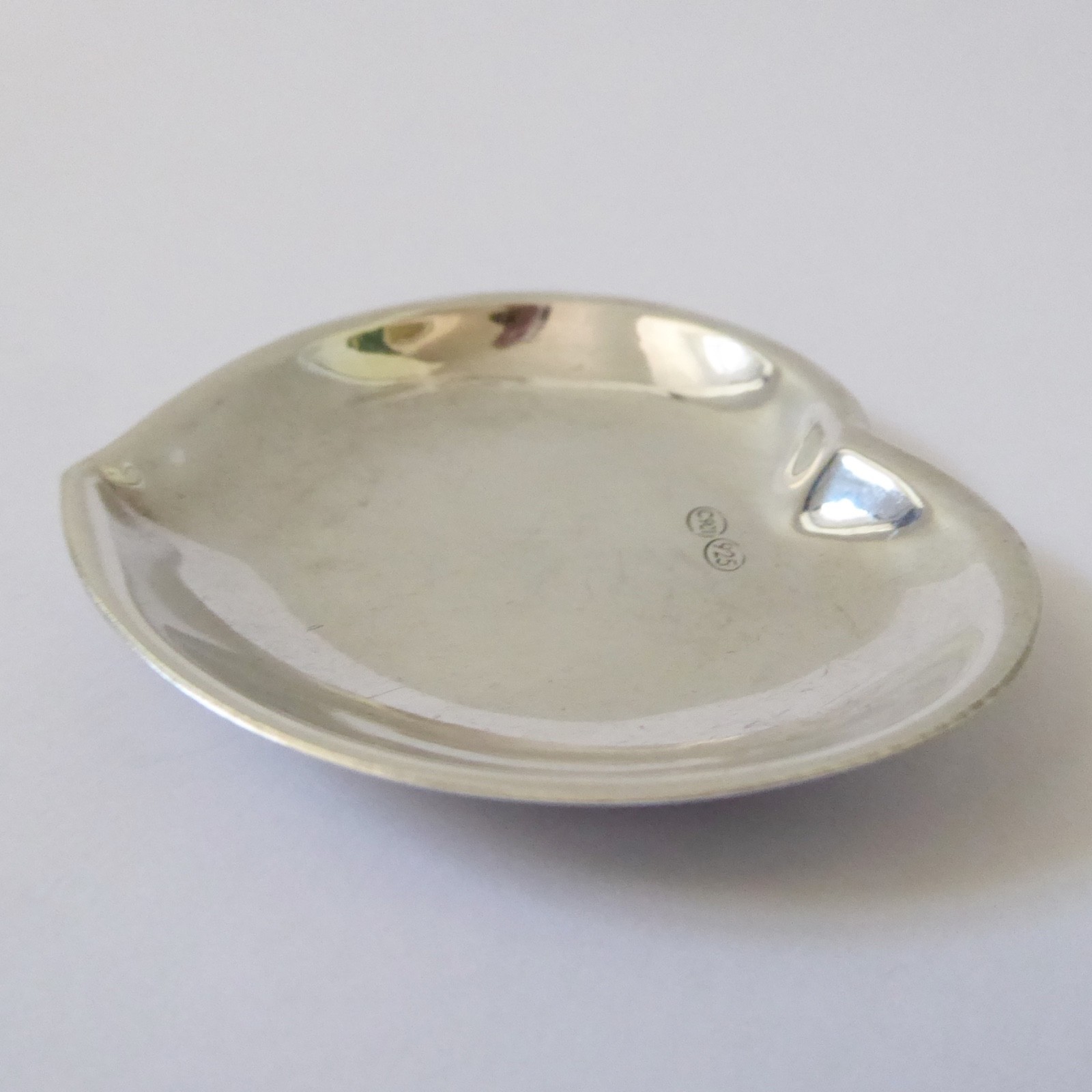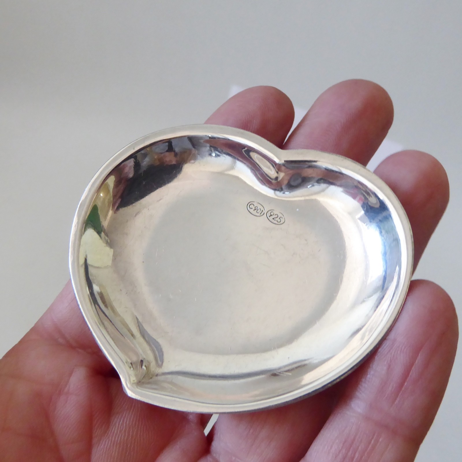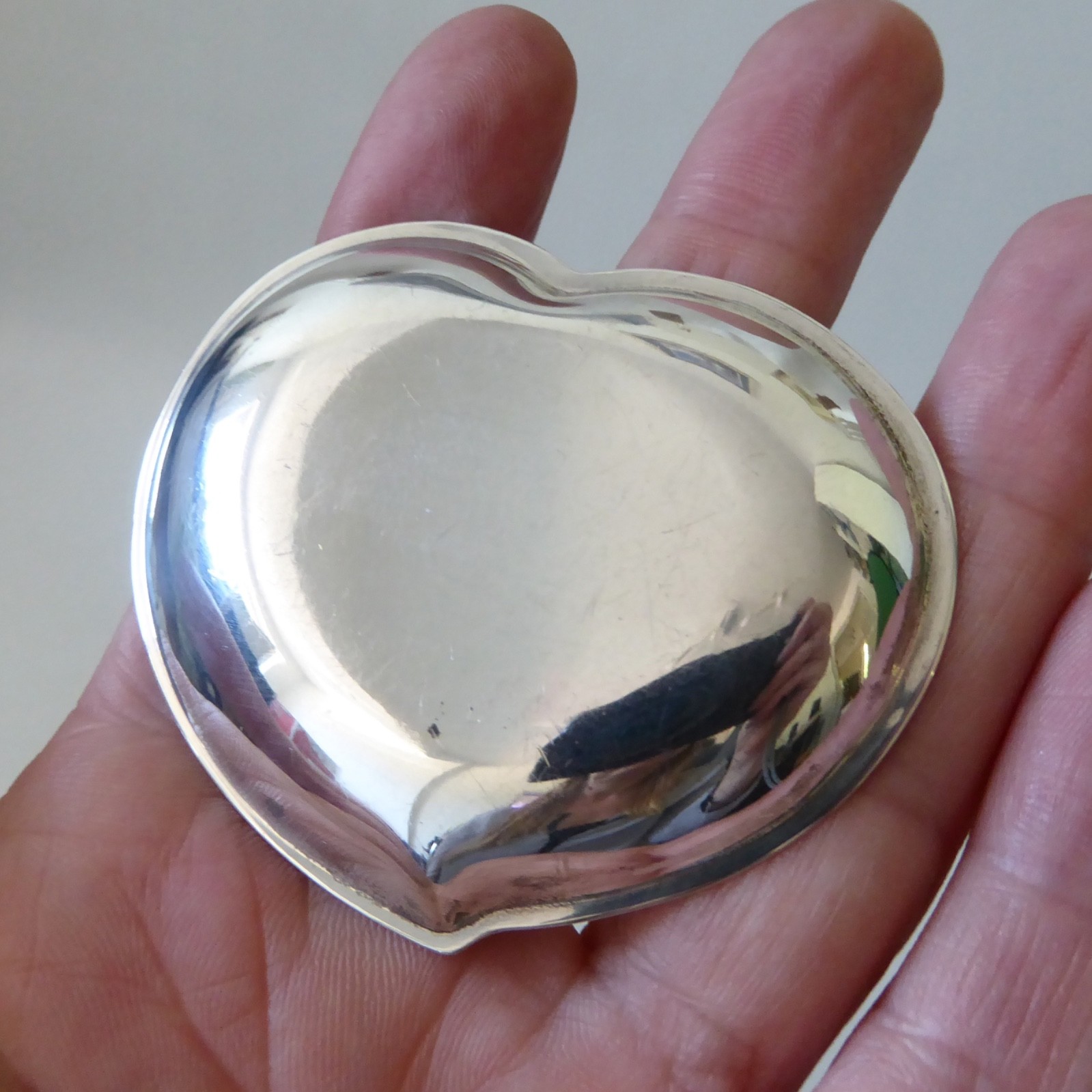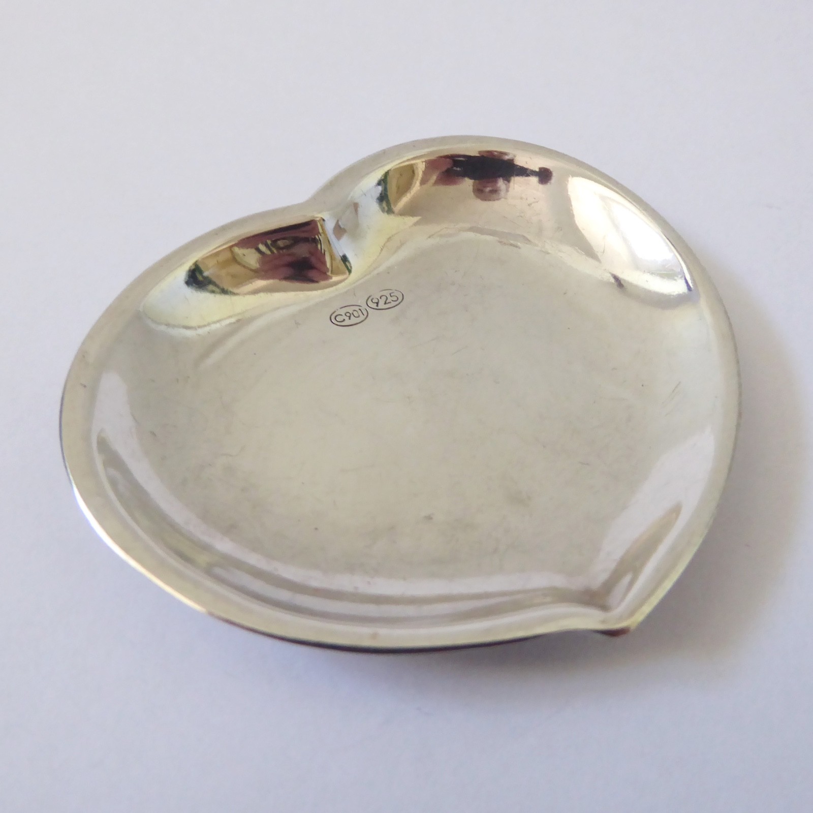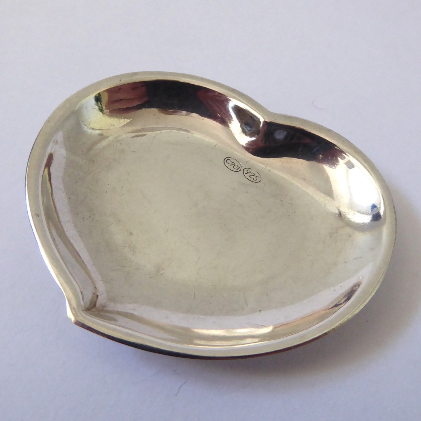 A small and shallow heart shaped silver dish, ideal as a gift.
