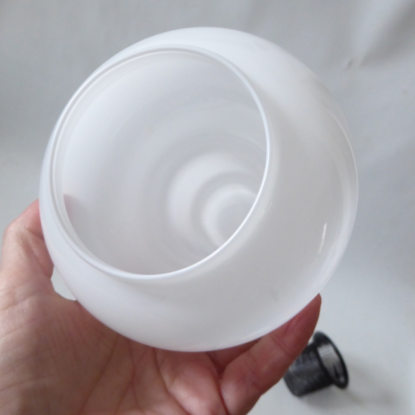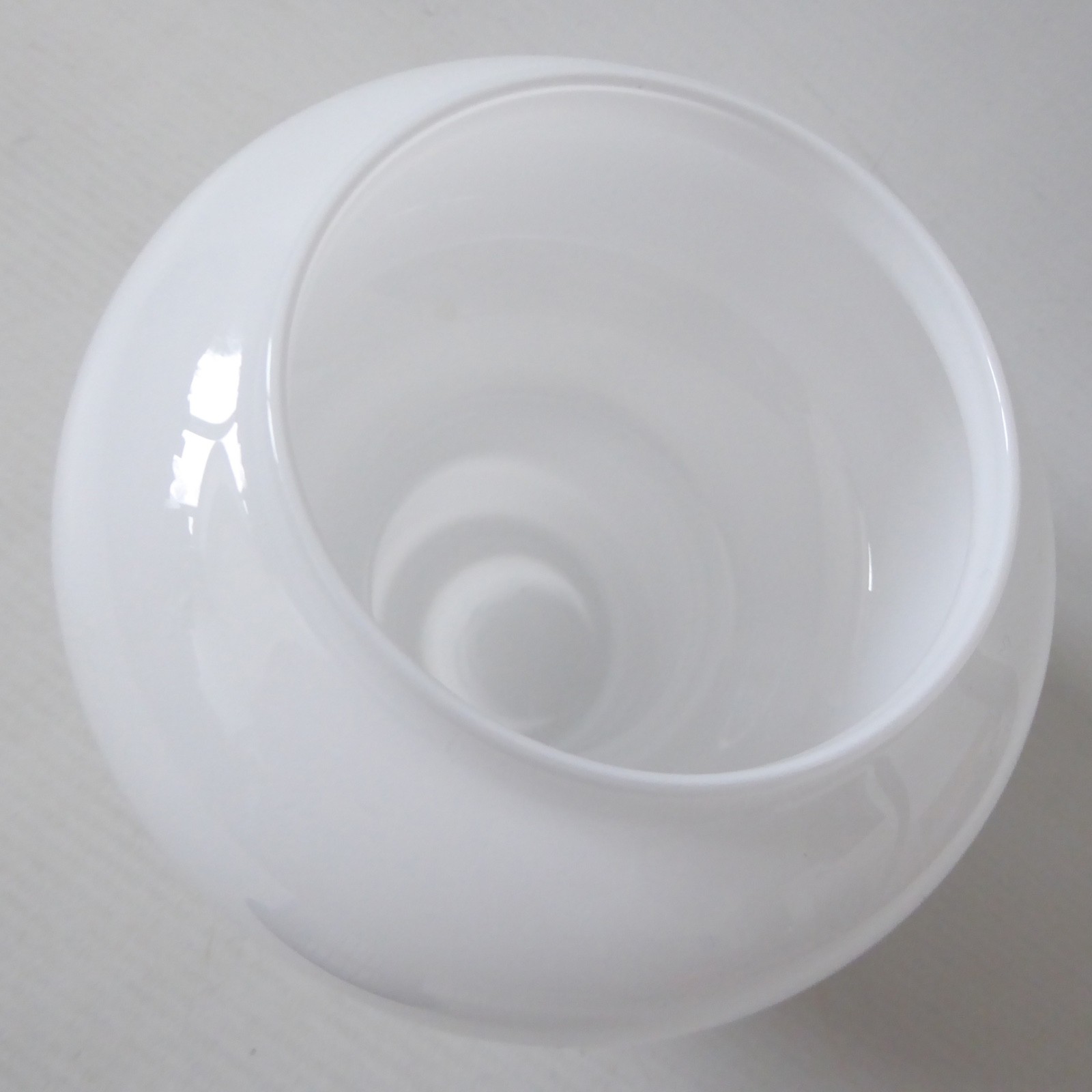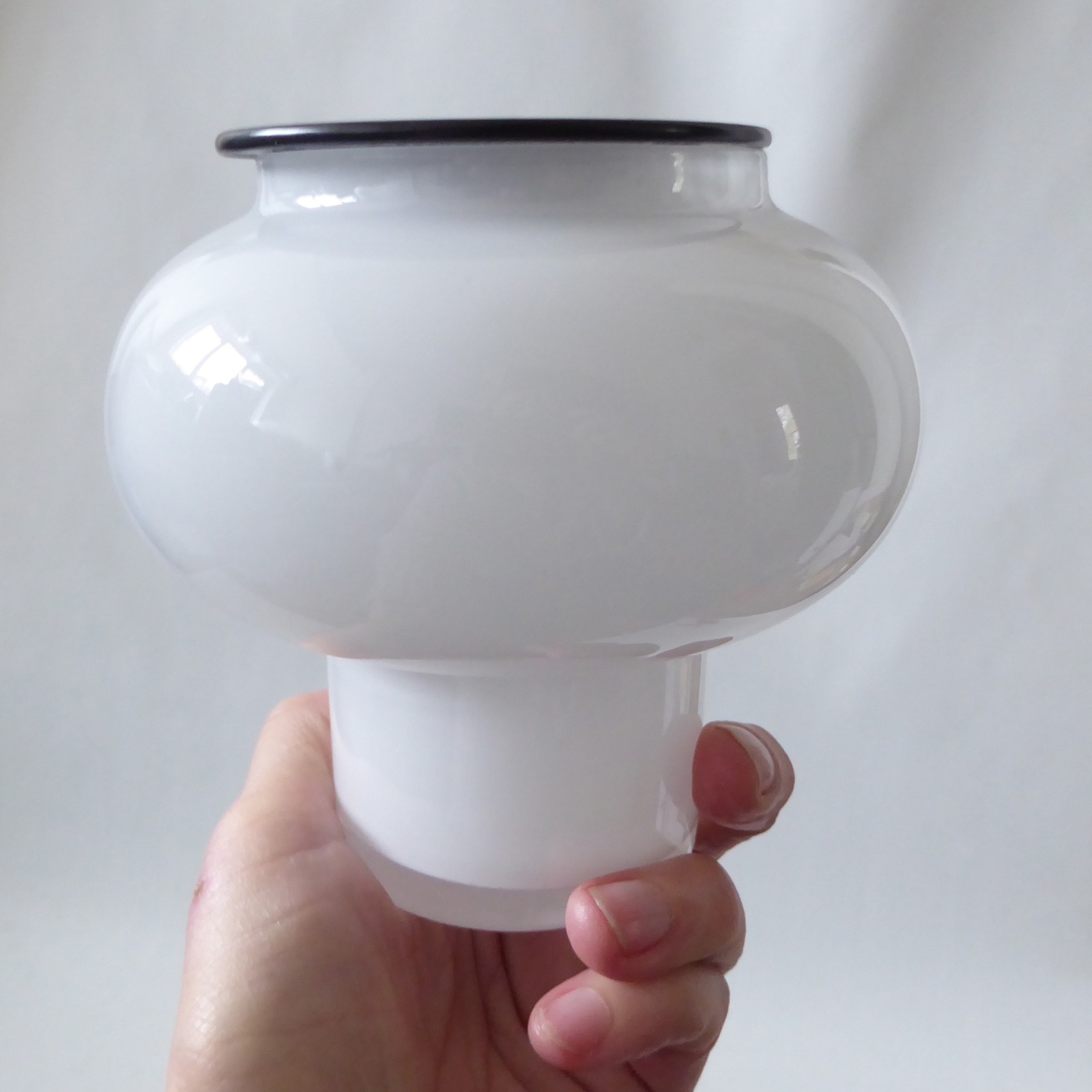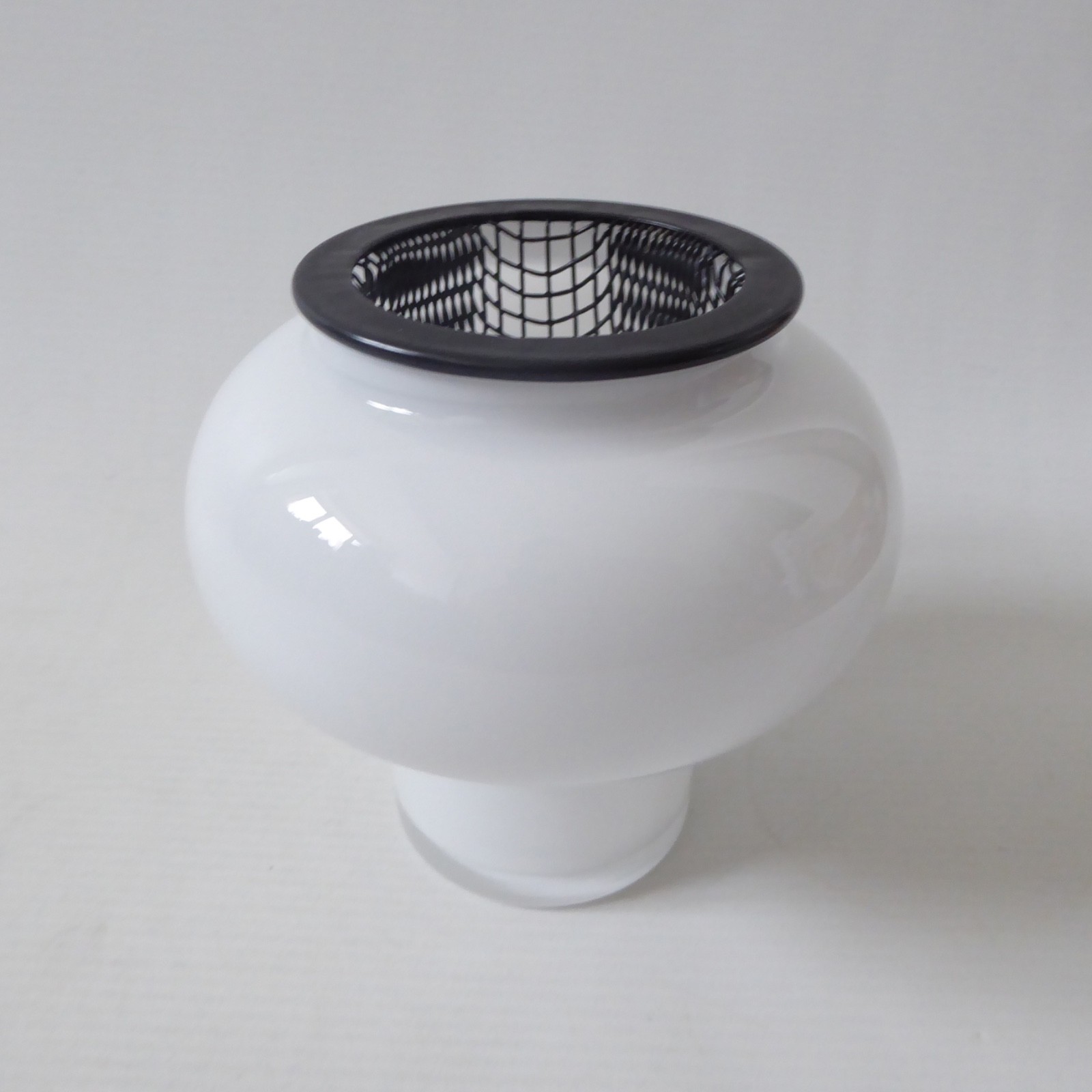 Opal white art glass, cased in clear with cylinder foot and bulbous hooped upper.