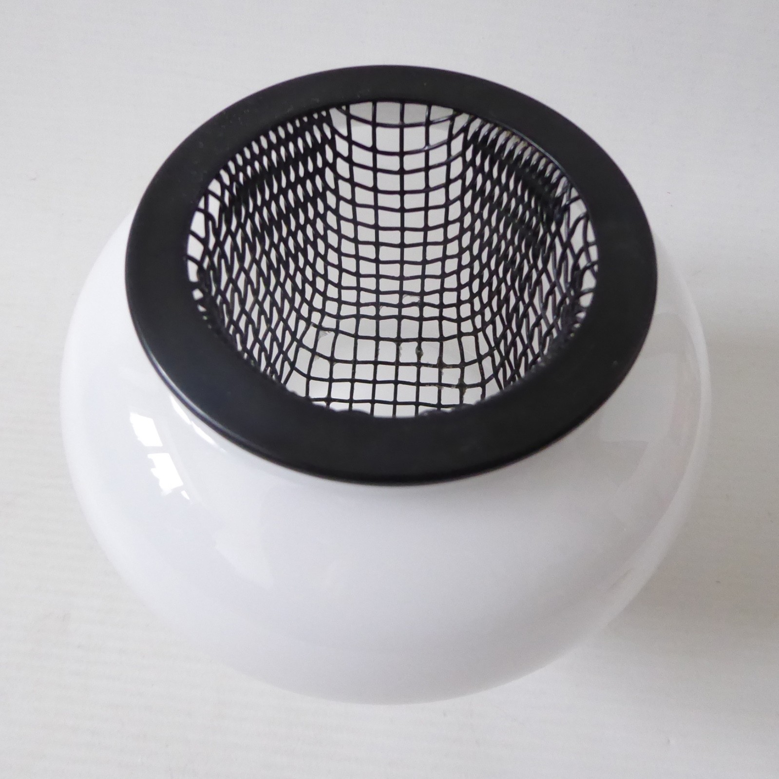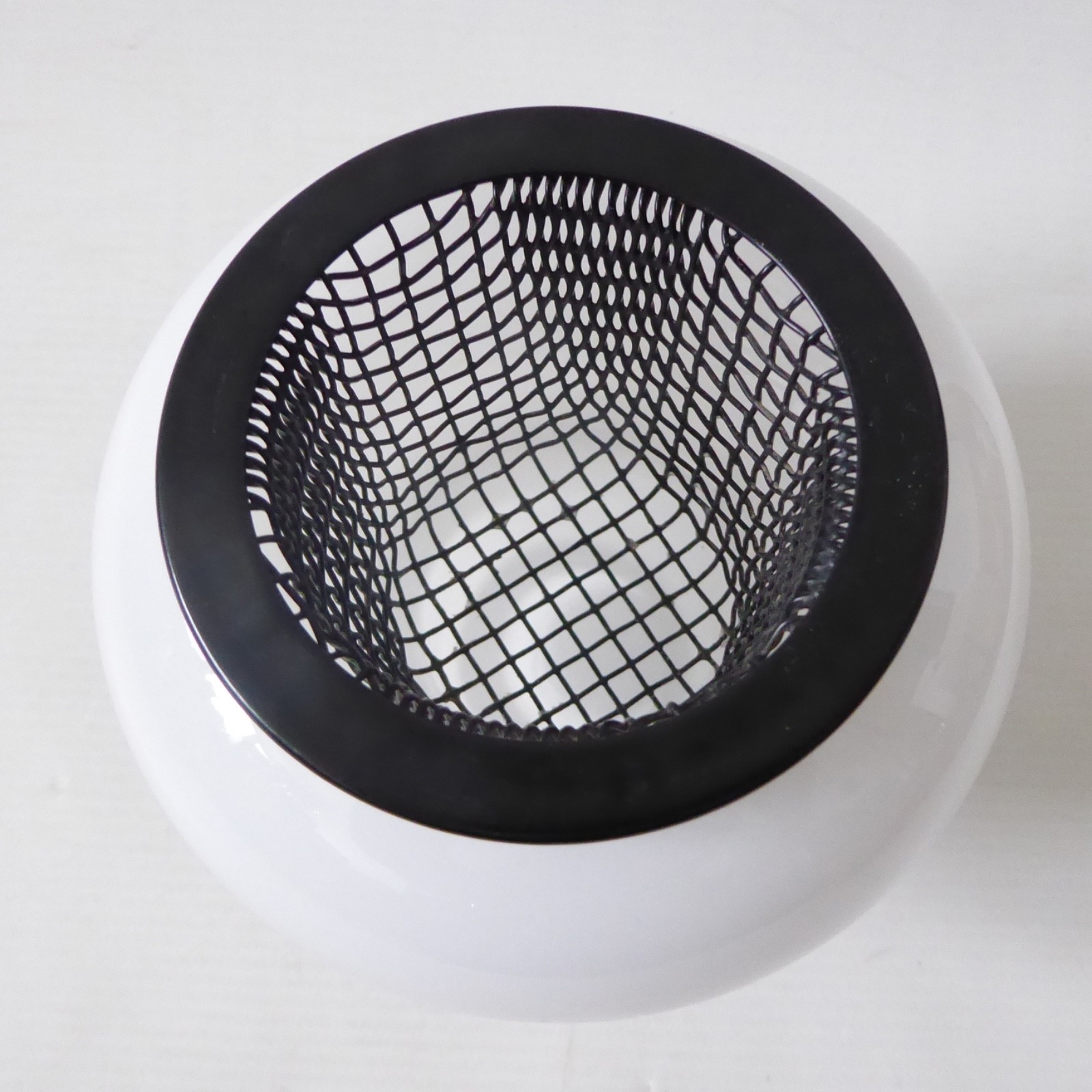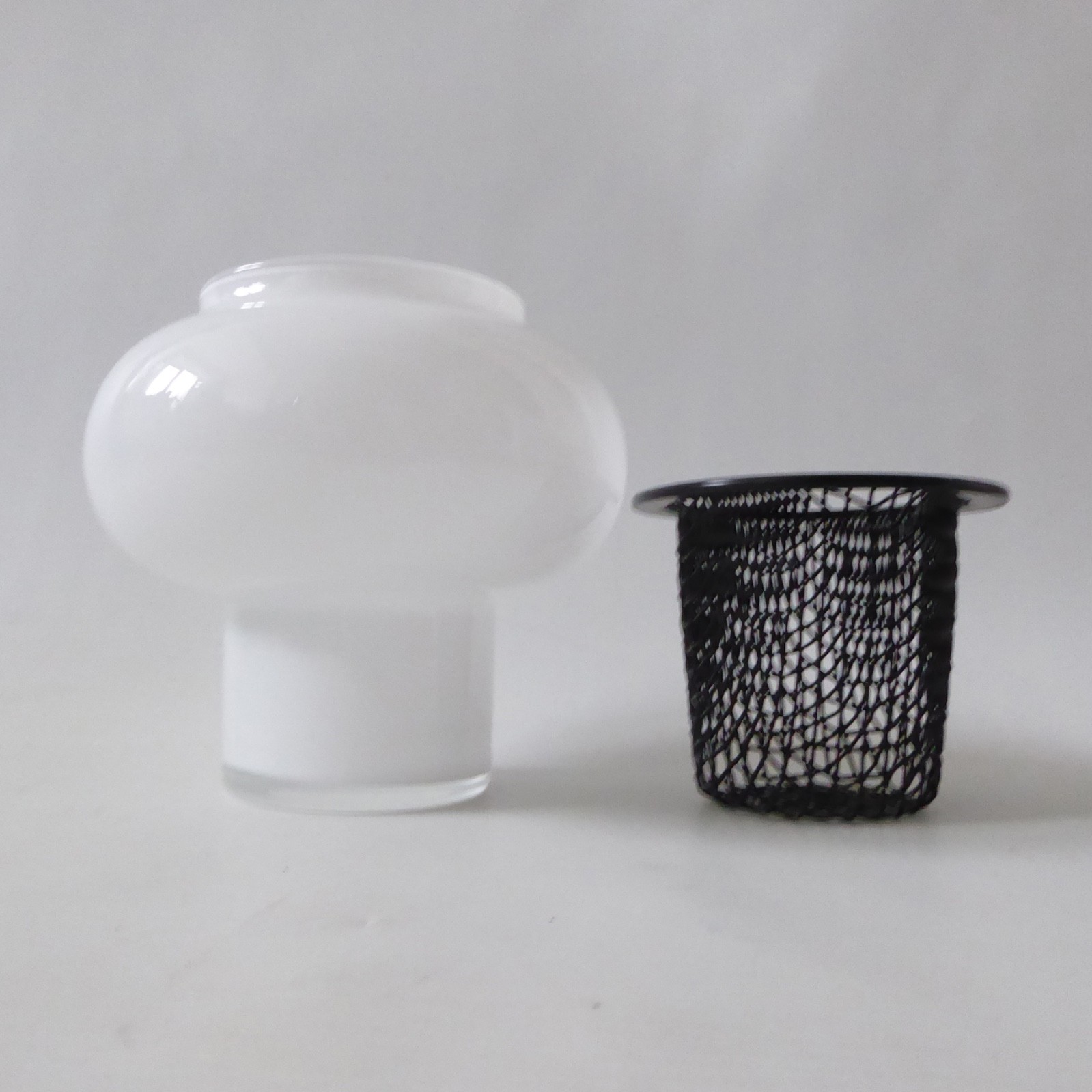 A lovely iittala Finland art glass candle holder with inner black mesh cradle.
