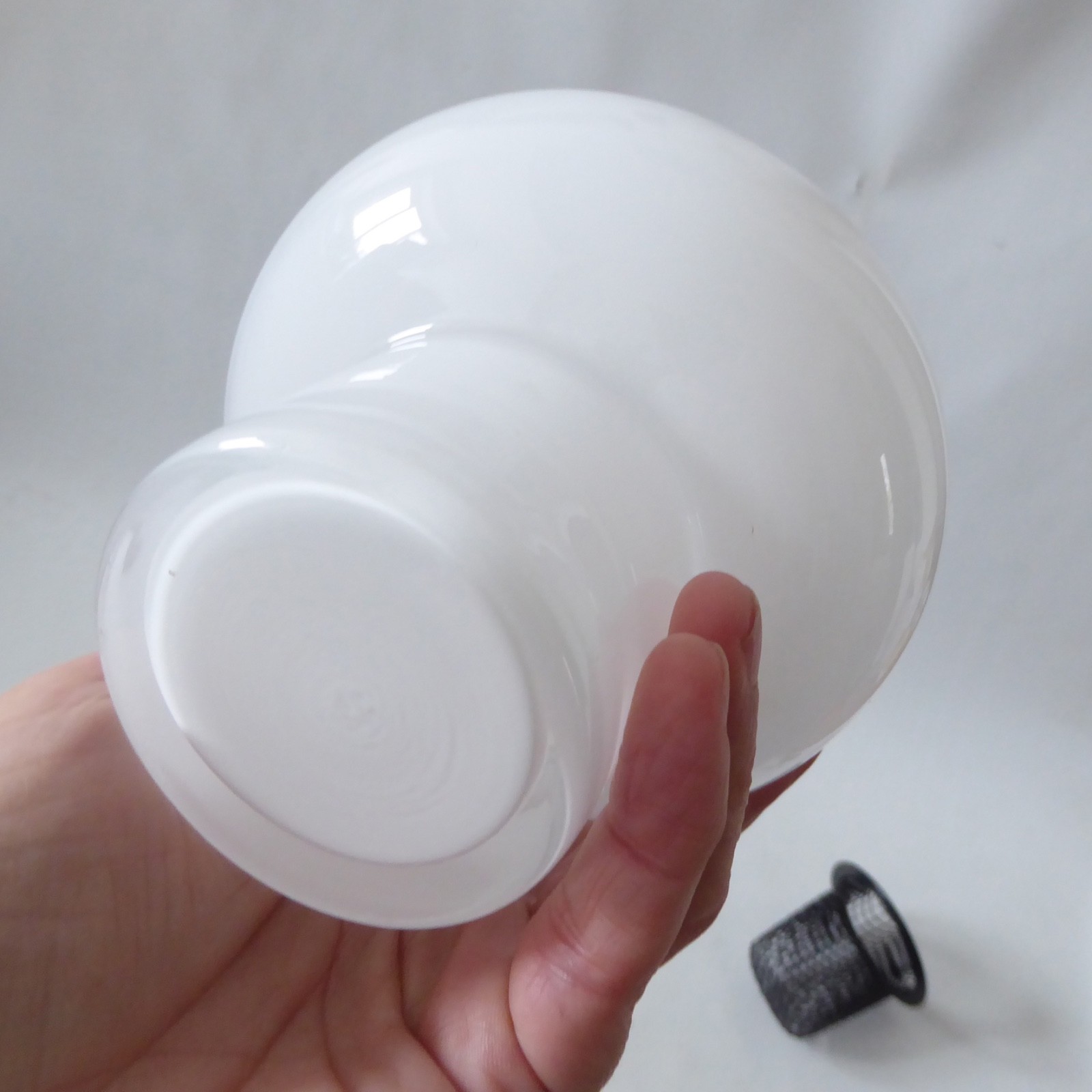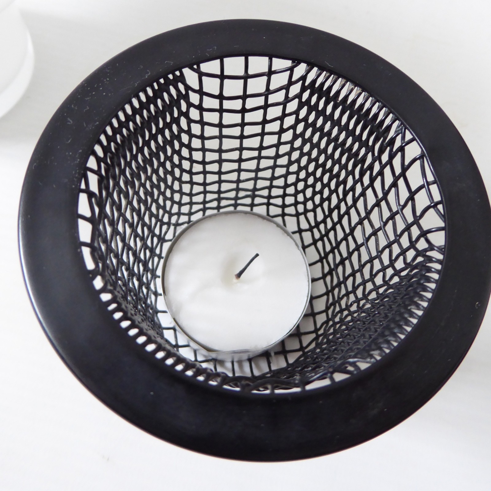 It has a removable black metal inner cradle/mesh for your tealight (or similar) candle.