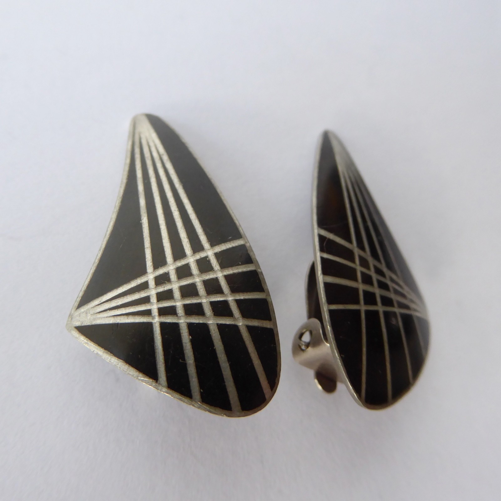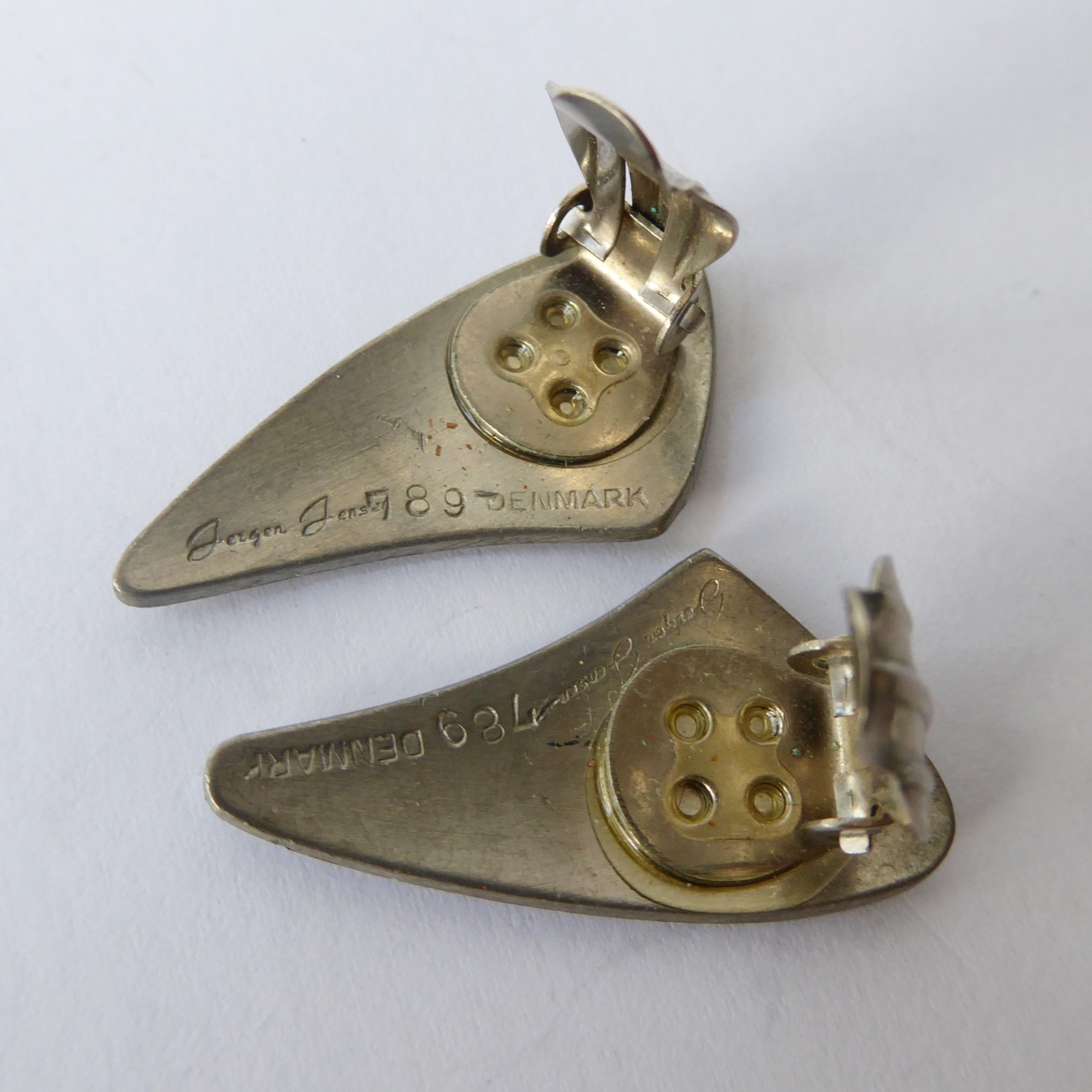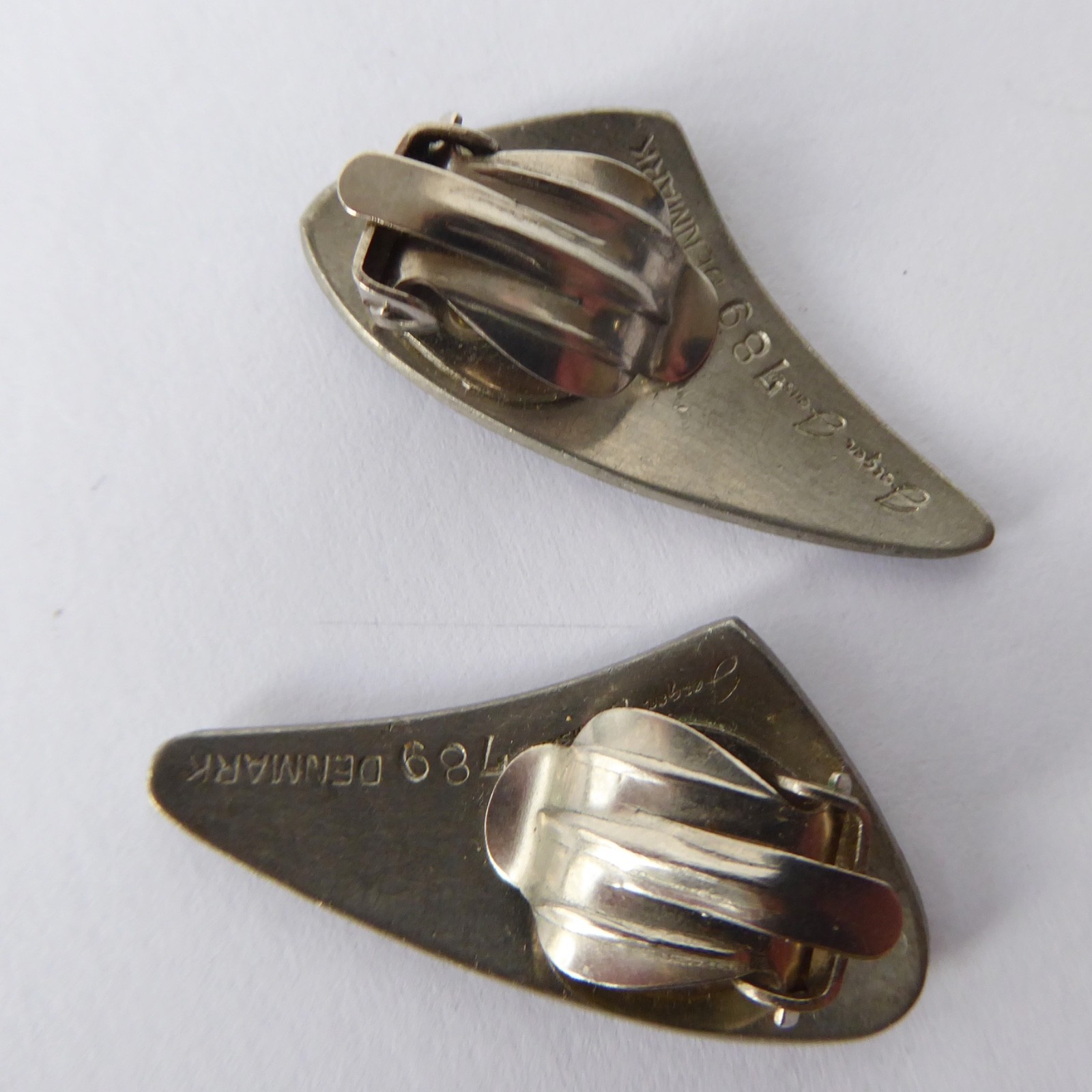 A pair of pewter matching clip-on earrings from Jorgen Jensen, Denmark.