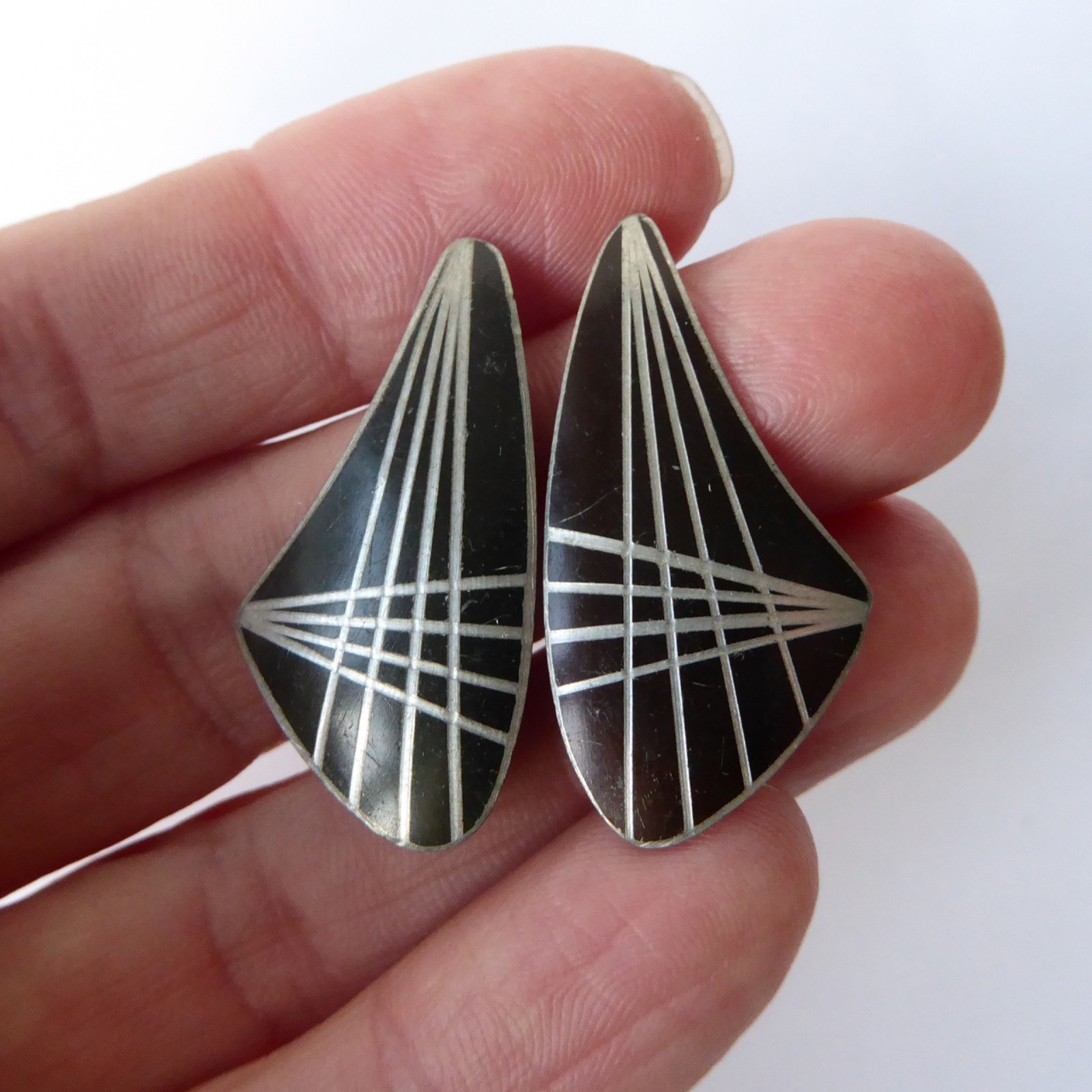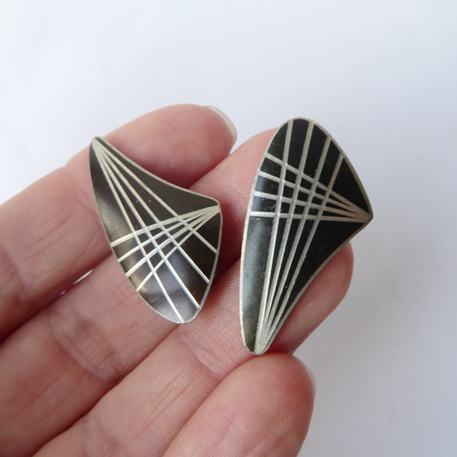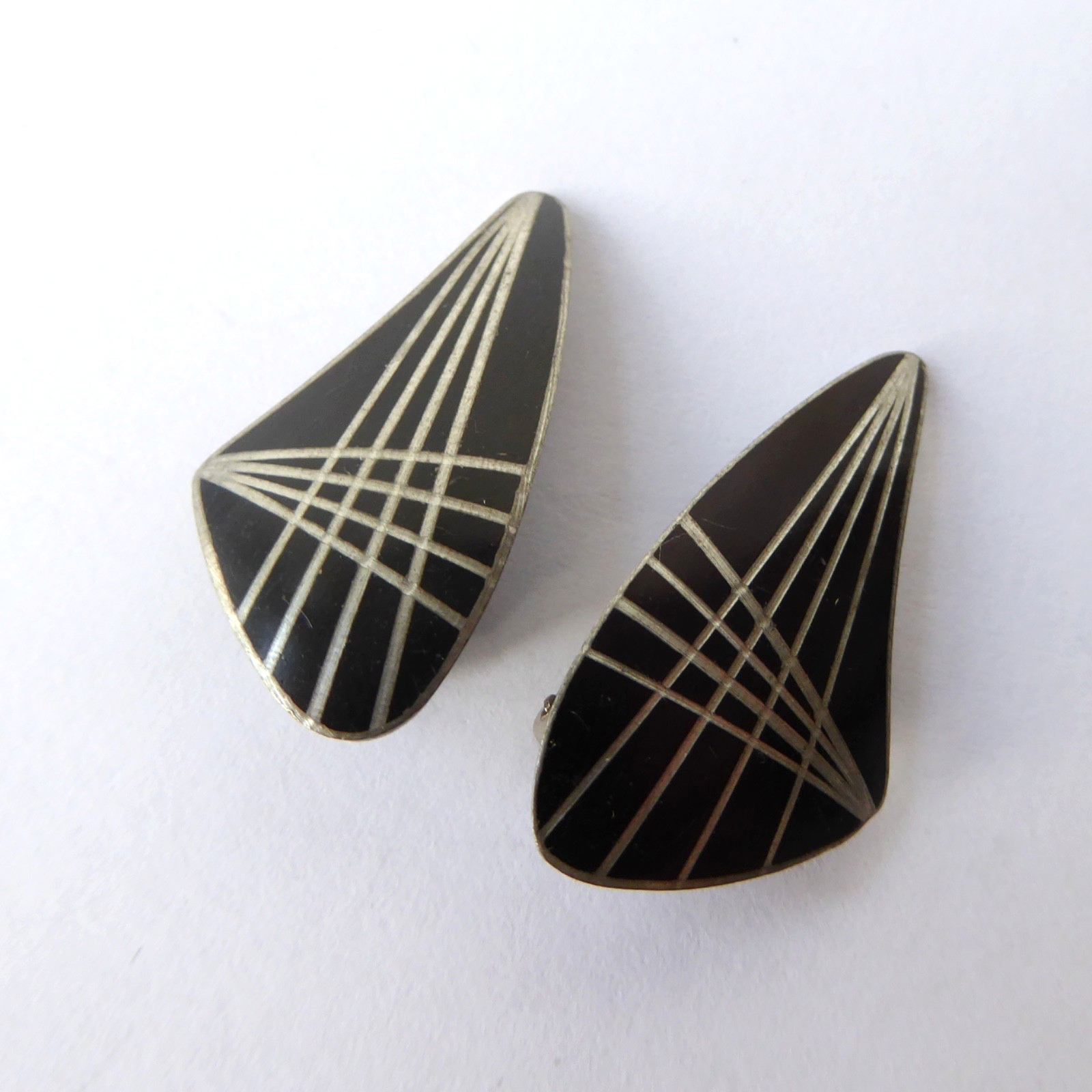 A pair of pewter matching clip-on earrings from Jorgen Jensen, Denmark.