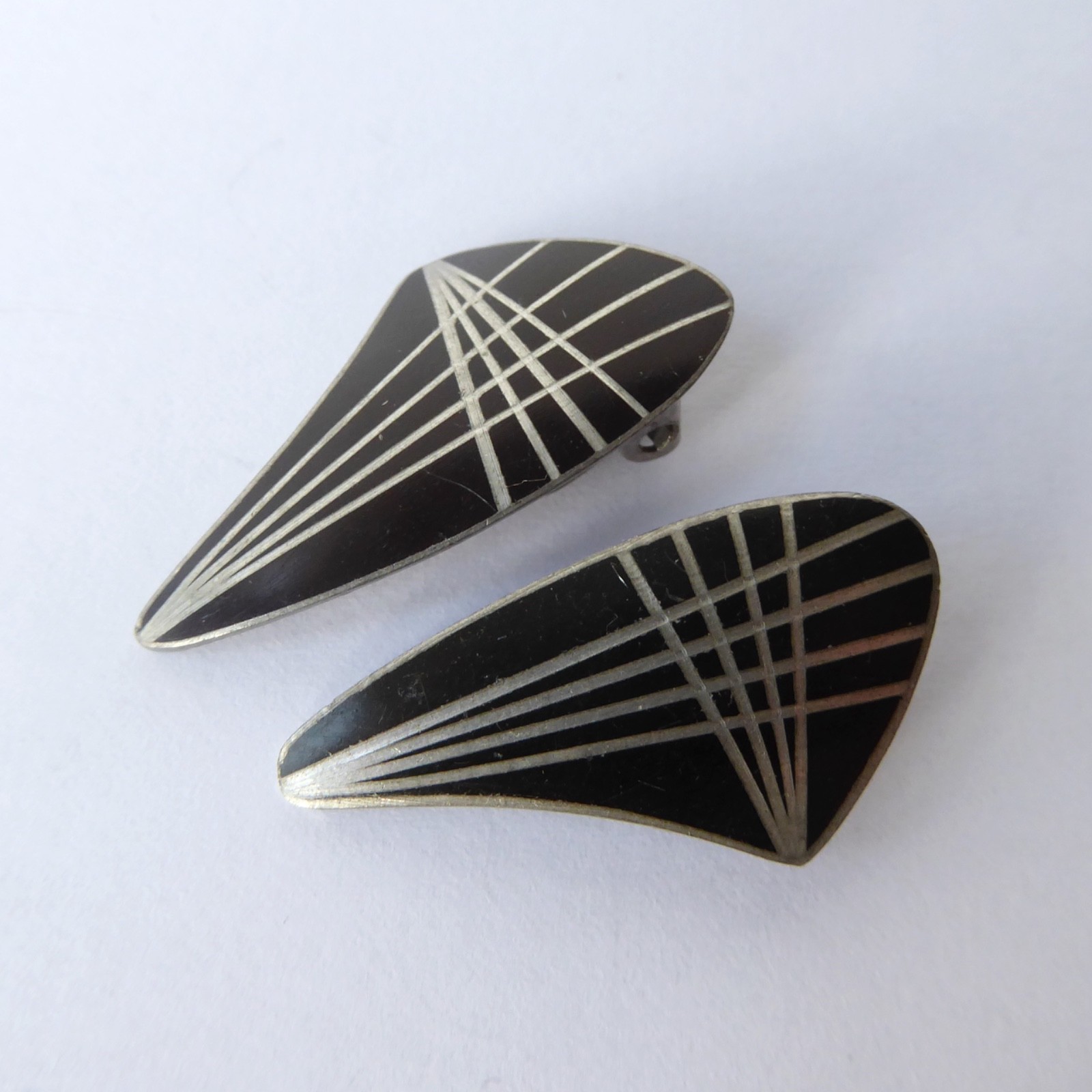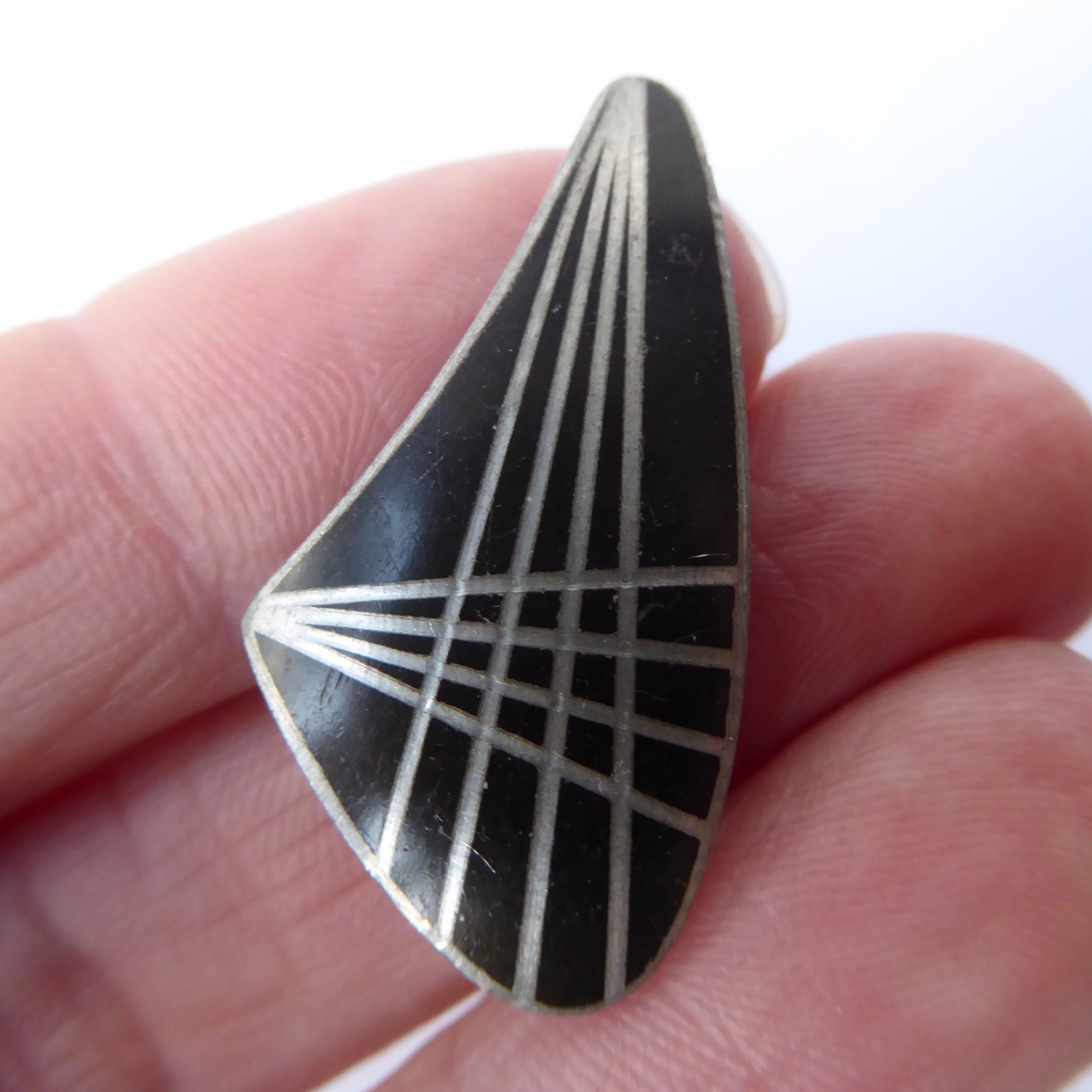 Model number 789 – a black enamelled asymmetric triangle with geometric lines.