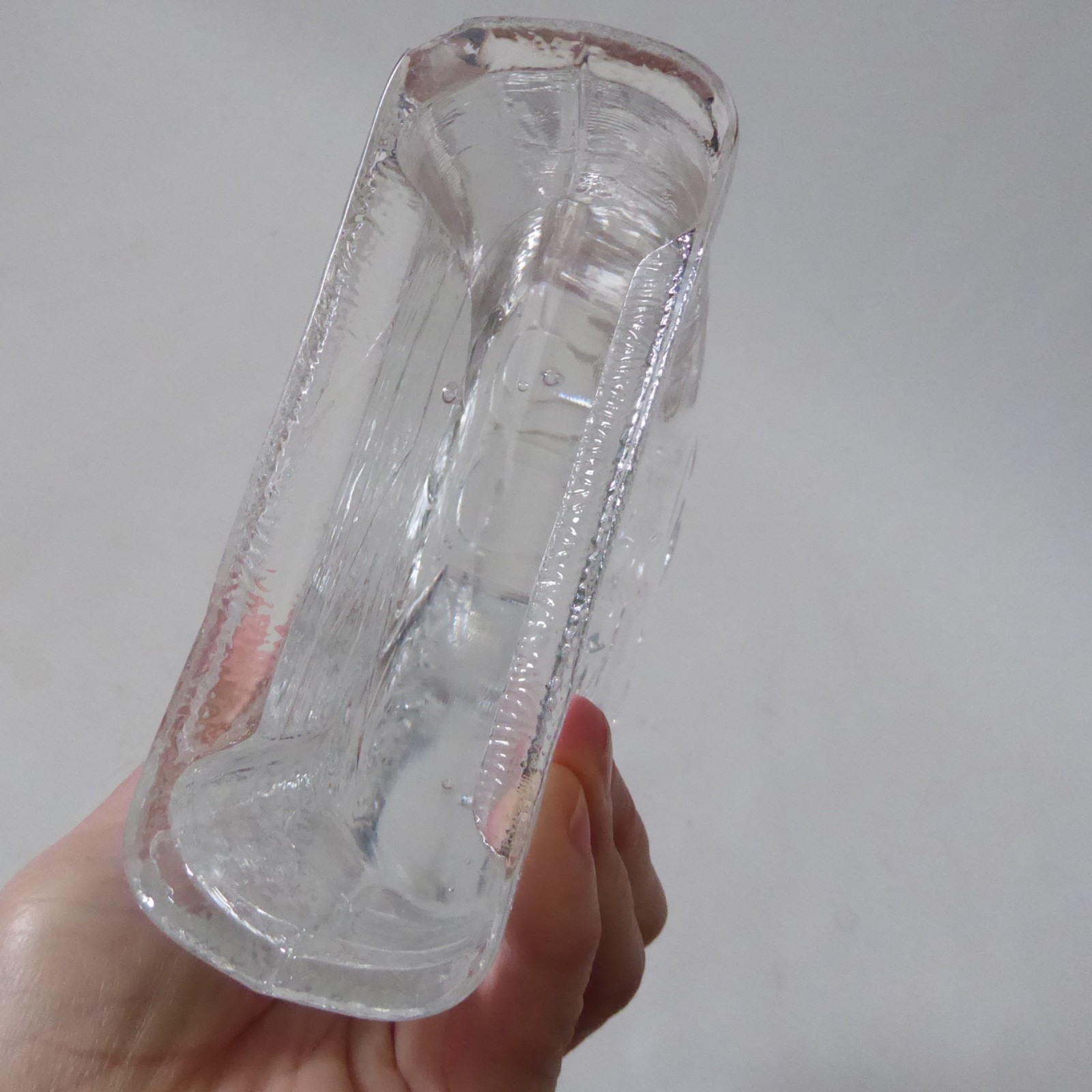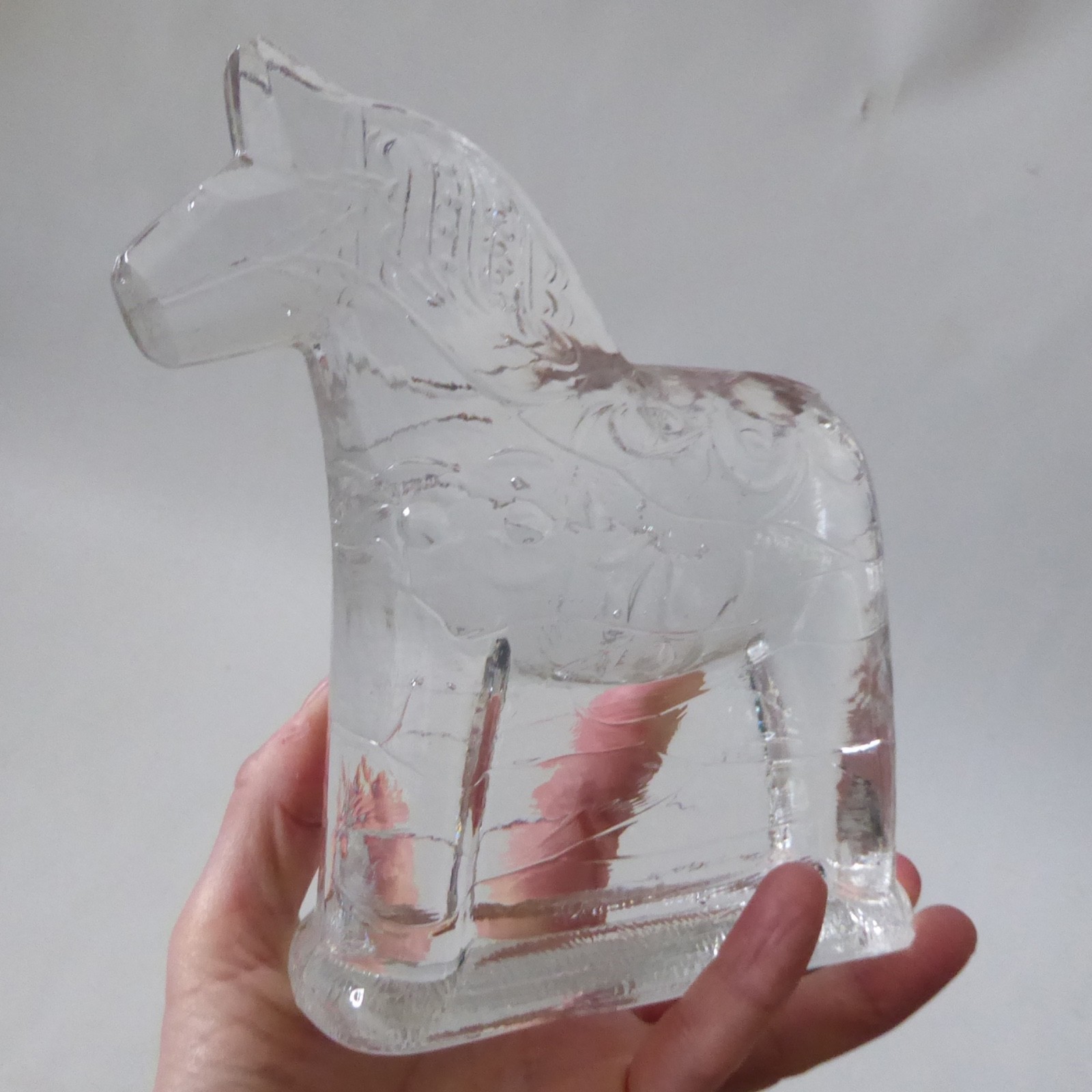 He’s handmade pressed/moulded bright clear art glass with Dala patterns and details, undoubtedly with a crystal content.