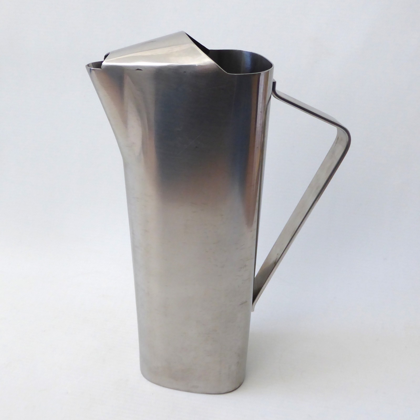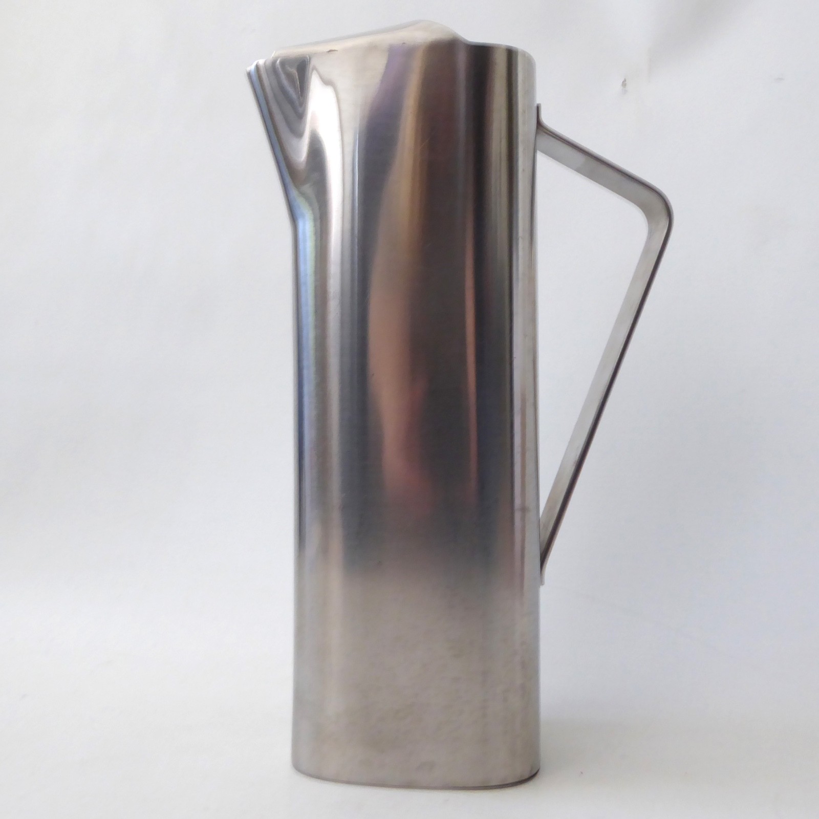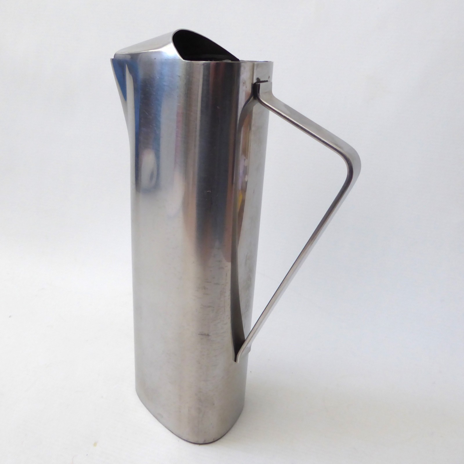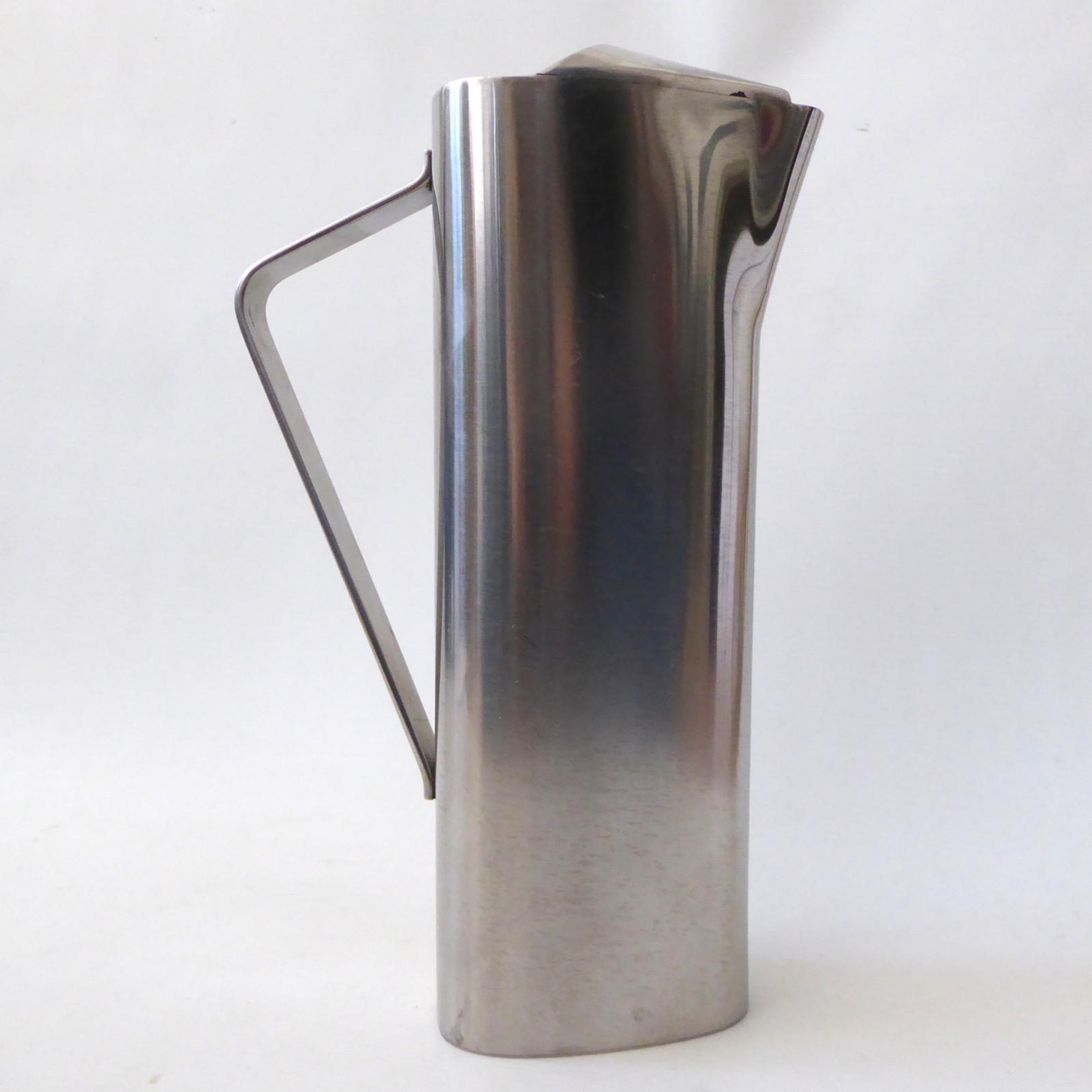 A lovely Lundtofte Danish tall steel pitcher jug, designed by Lone Sachs and dating from the early 1960s.