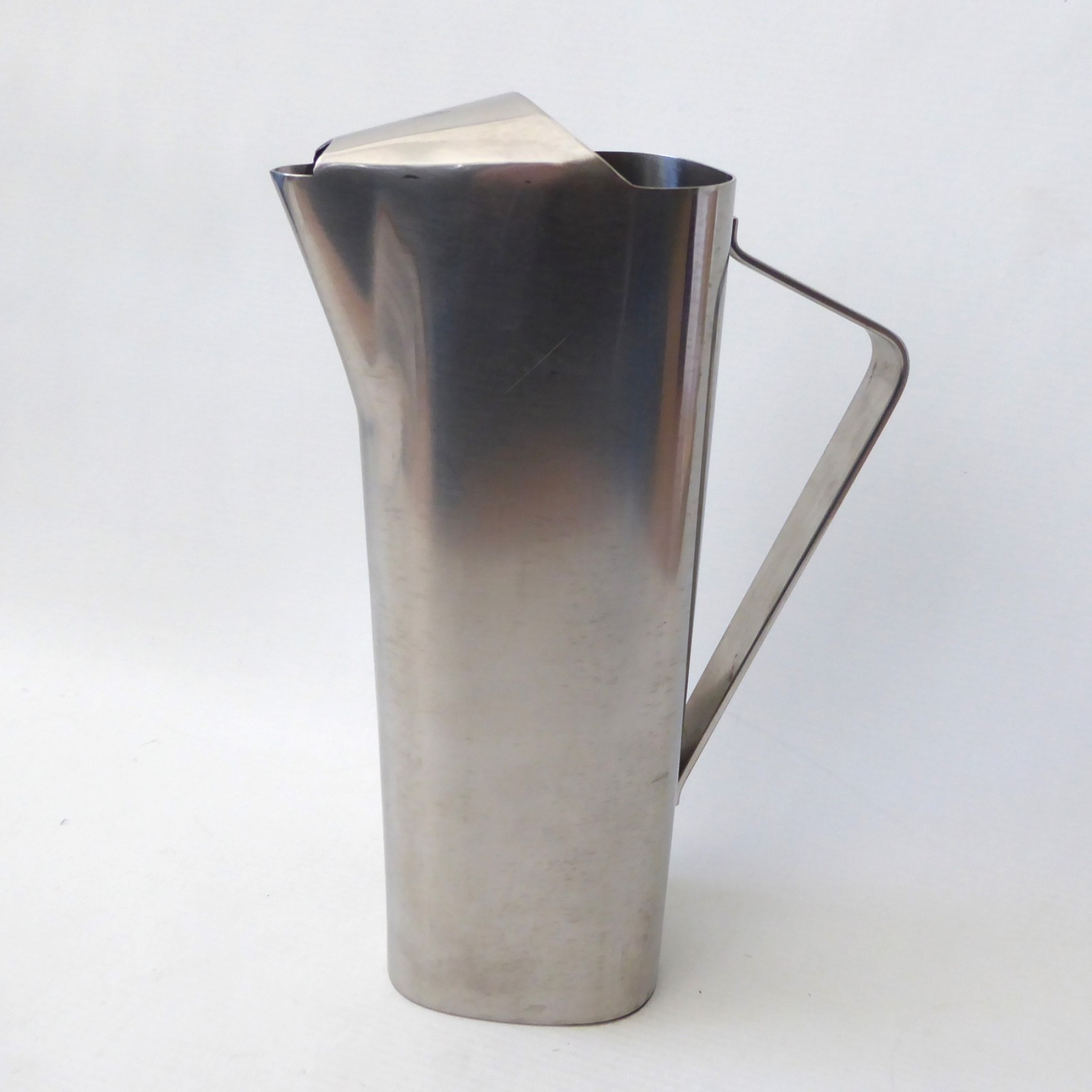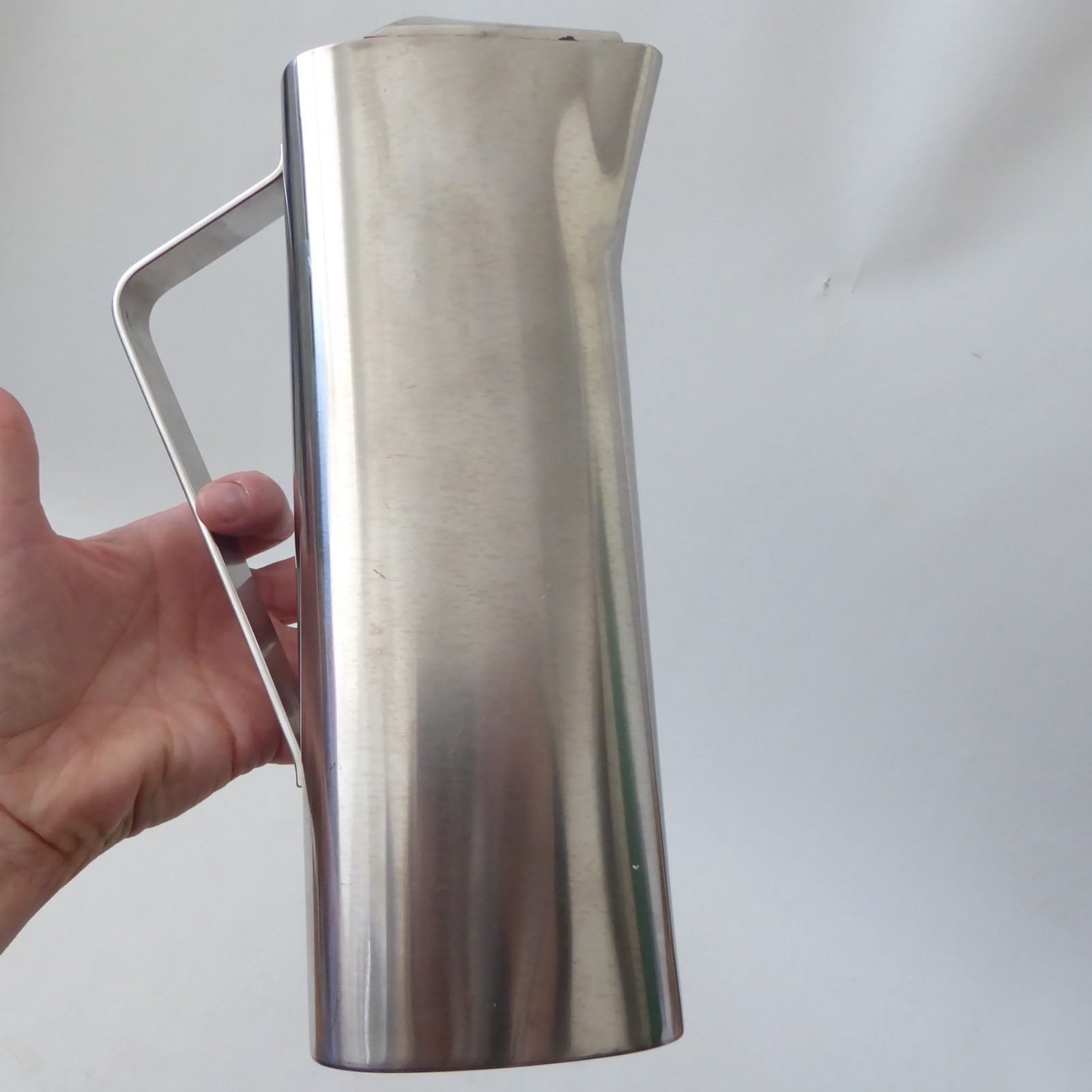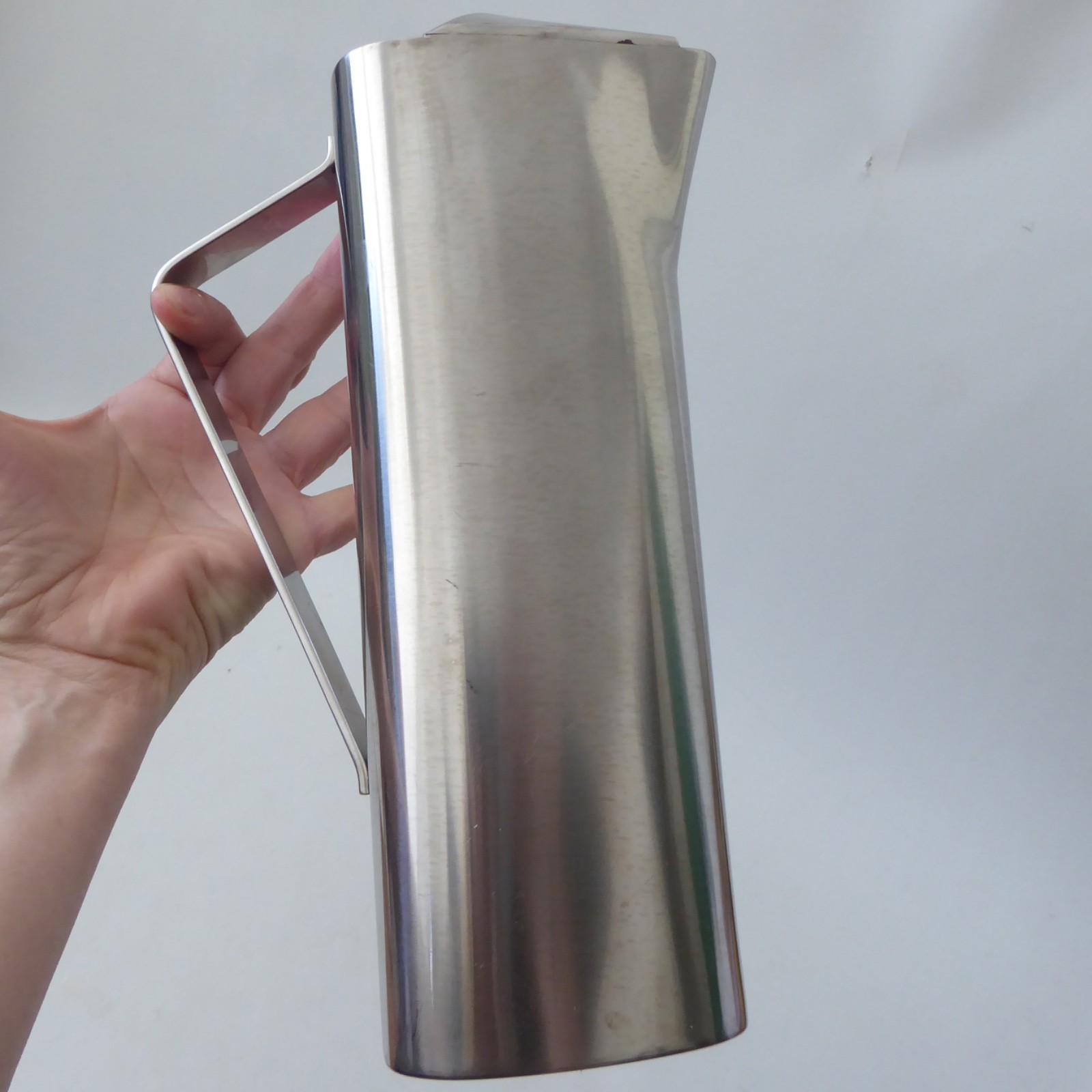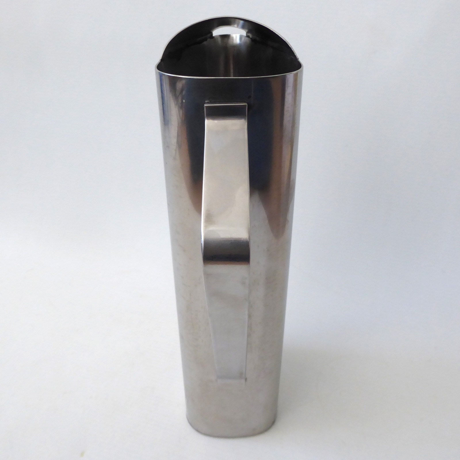 A lovely Lundtofte Danish tall steel pitcher jug, designed by Lone Sachs and dating from the early 1960s.