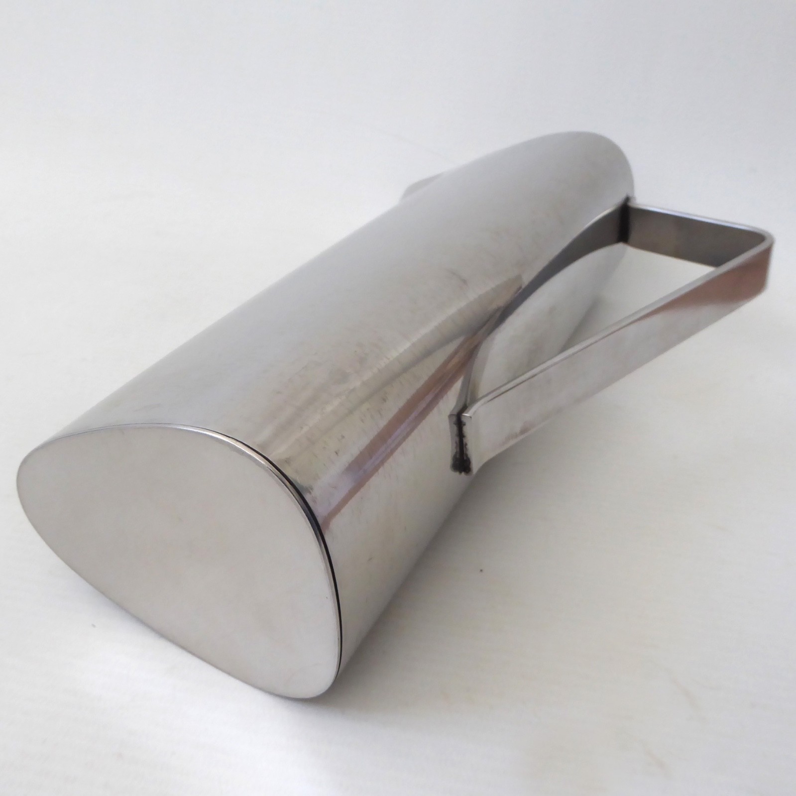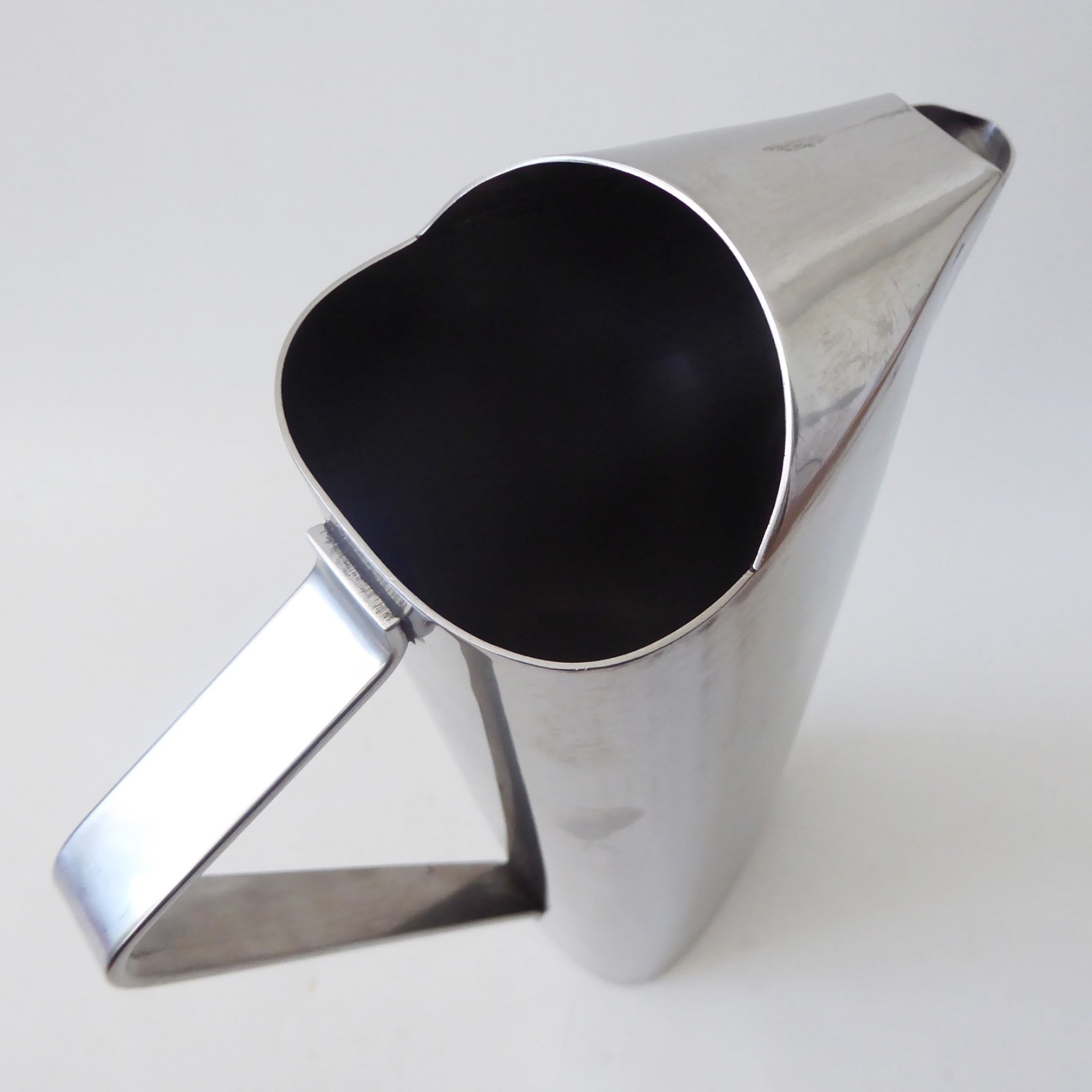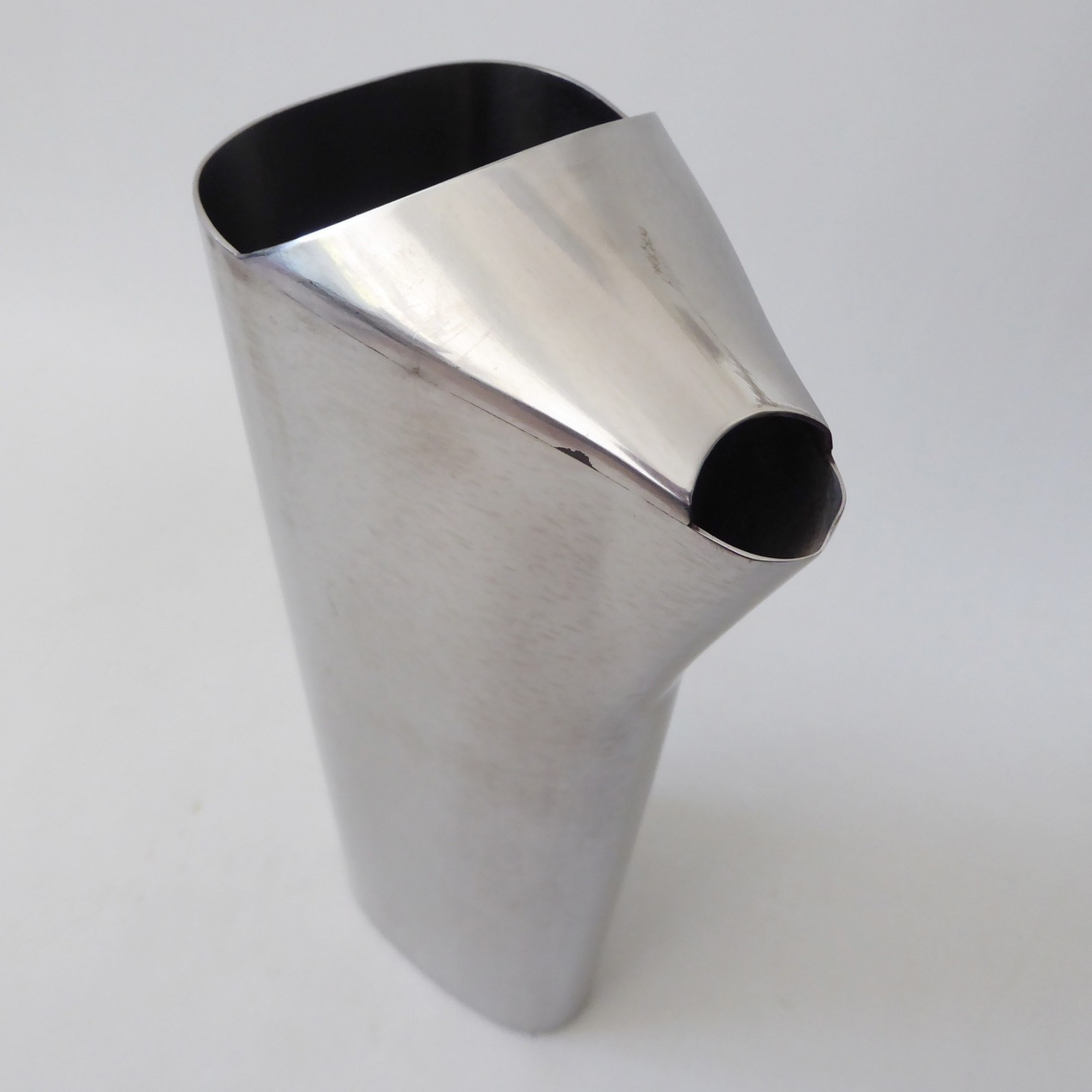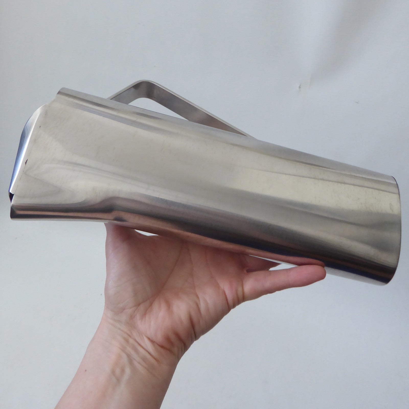 A lovely Lundtofte Danish tall steel pitcher jug, designed by Lone Sachs and dating from the early 1960s.