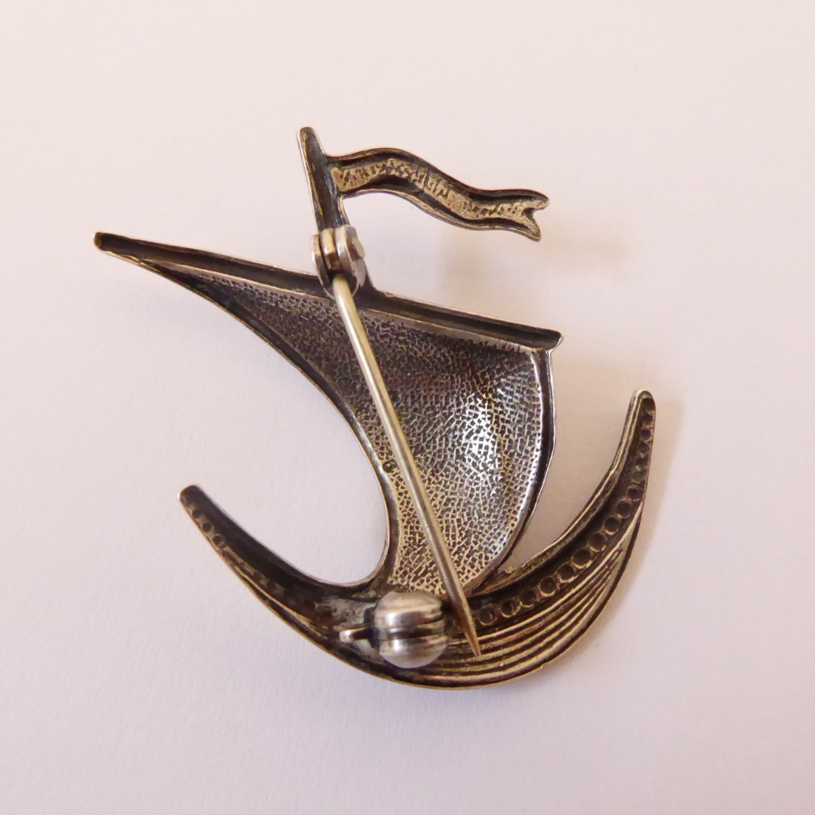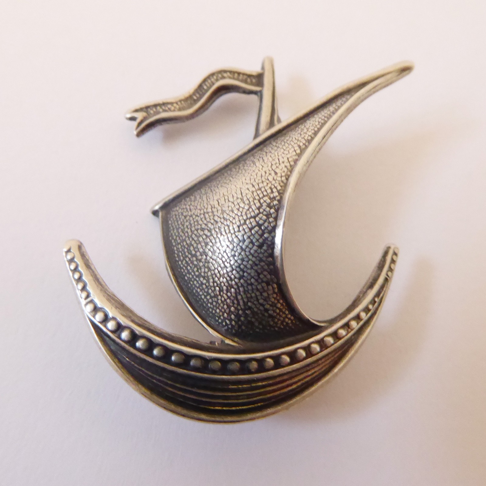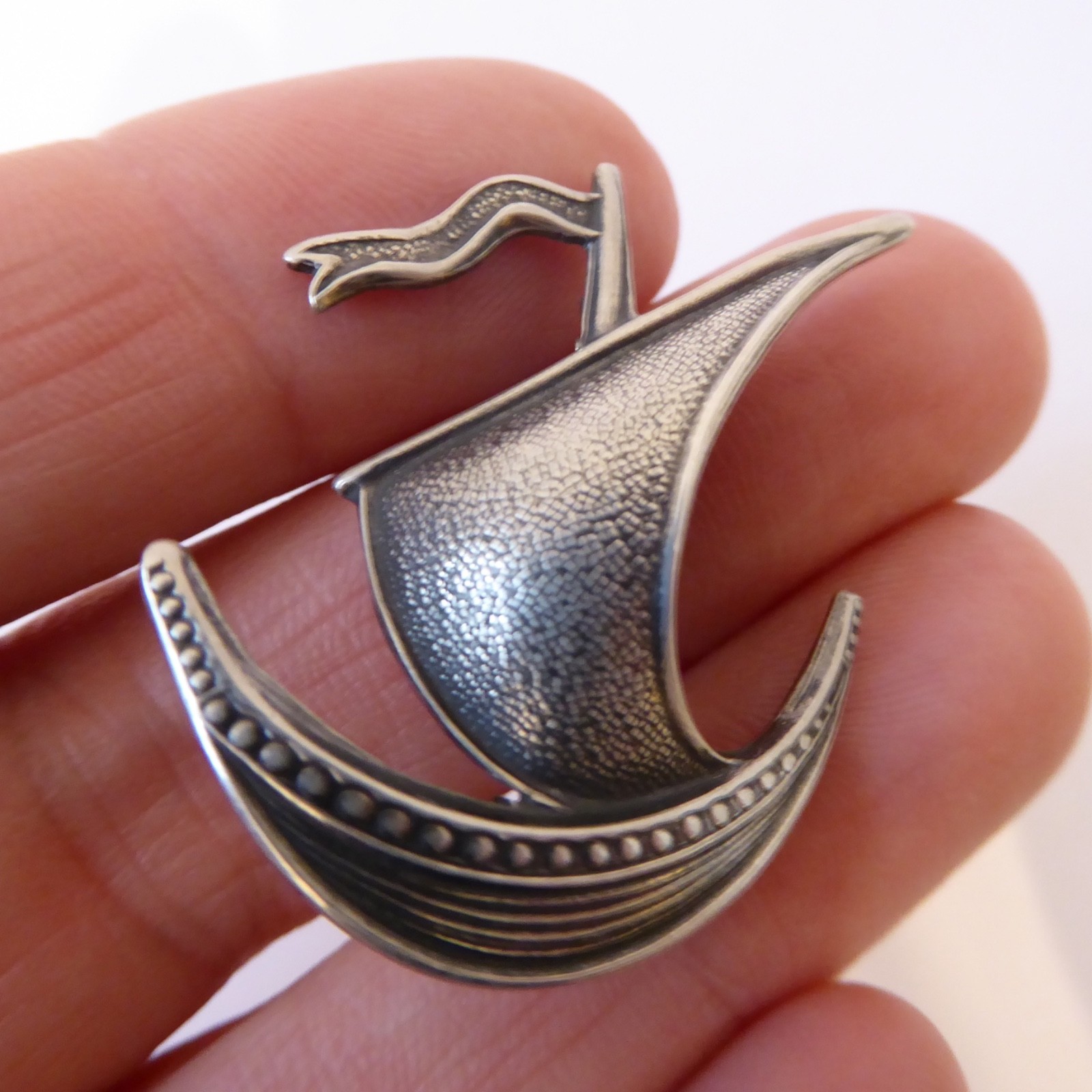Norwegian Ivar Holth sterling silver 925 vintage brooch viking boat ship galleon