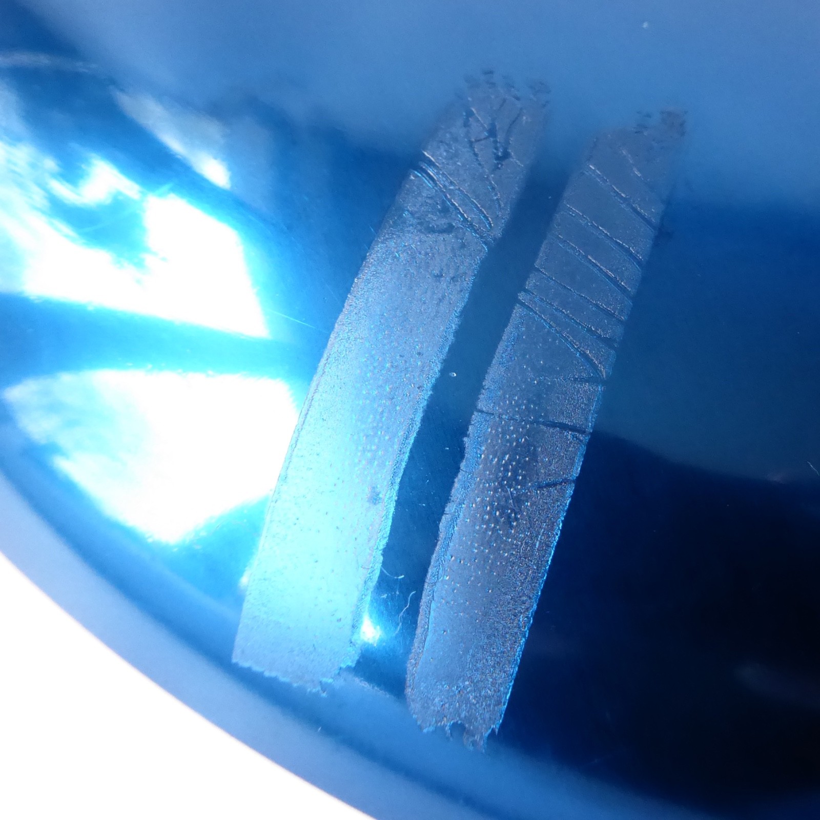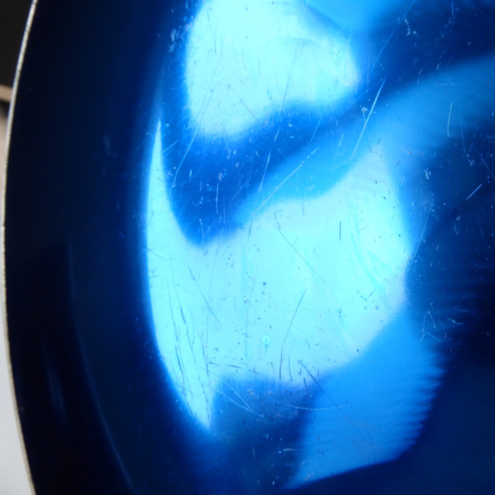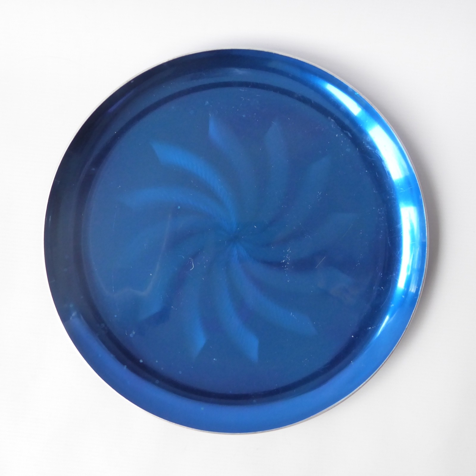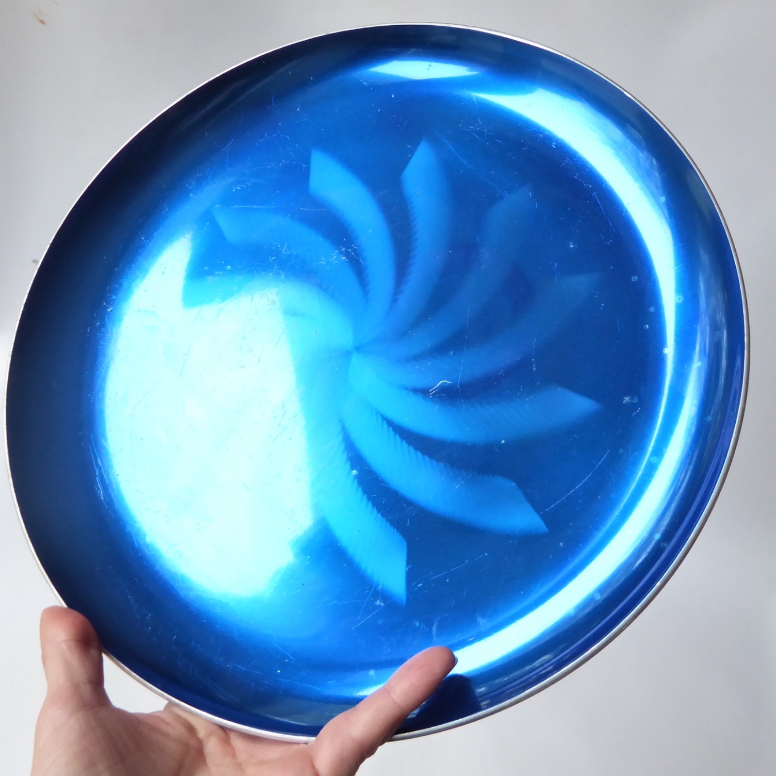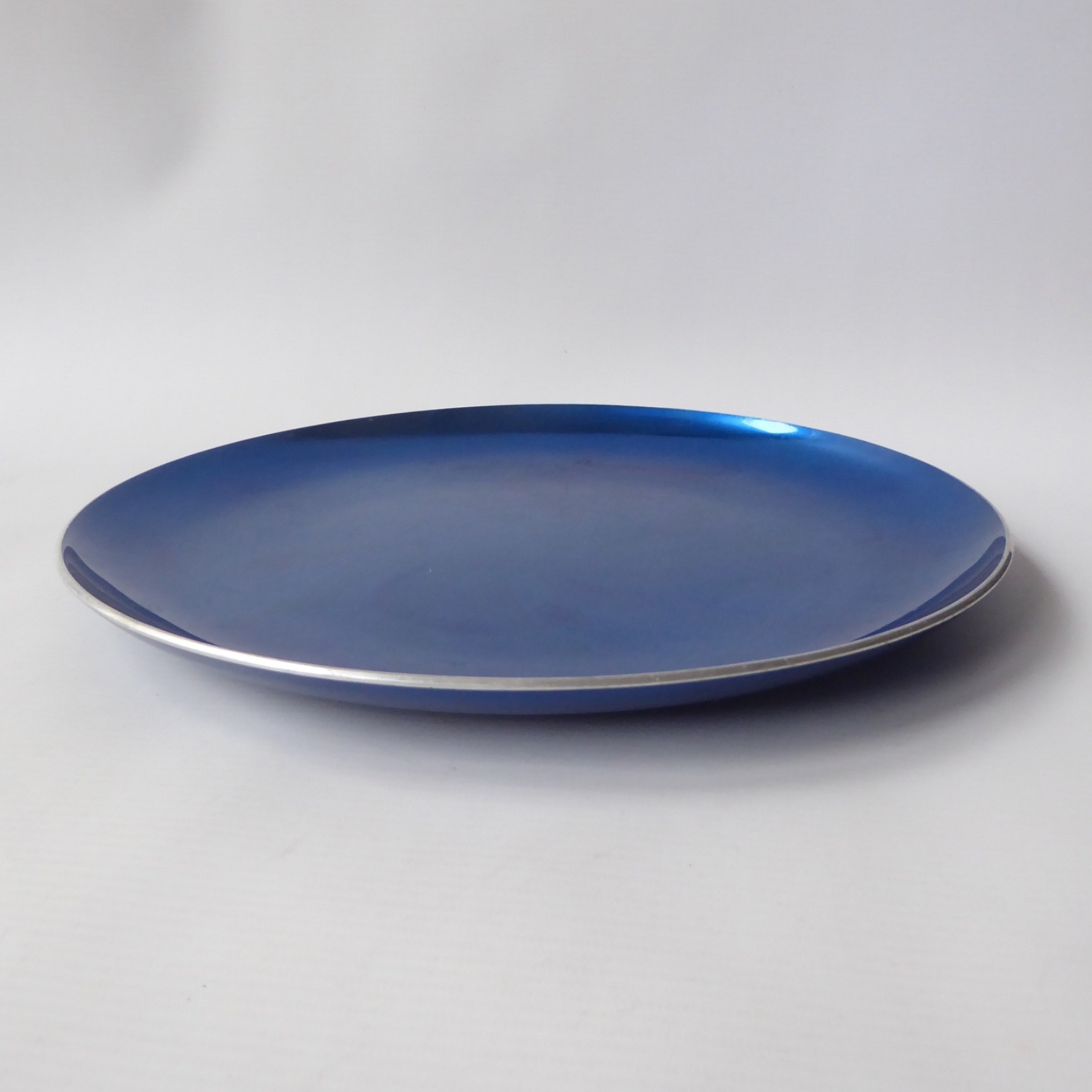 30cm wide aluminium, coated in a metallic blue anodised/enamel like coating.