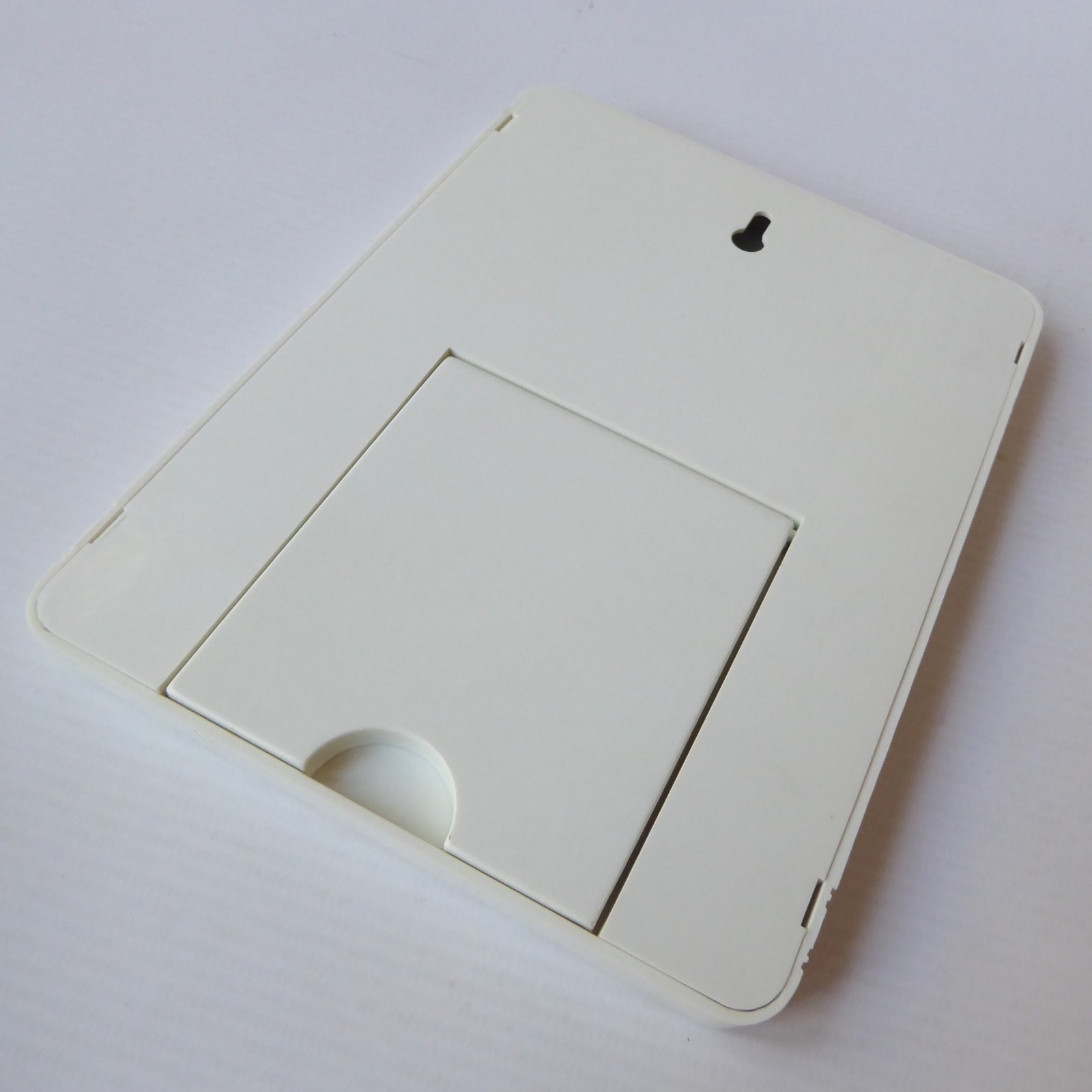 Stand to the back for standing up, or hanging hole to hang on the wall.