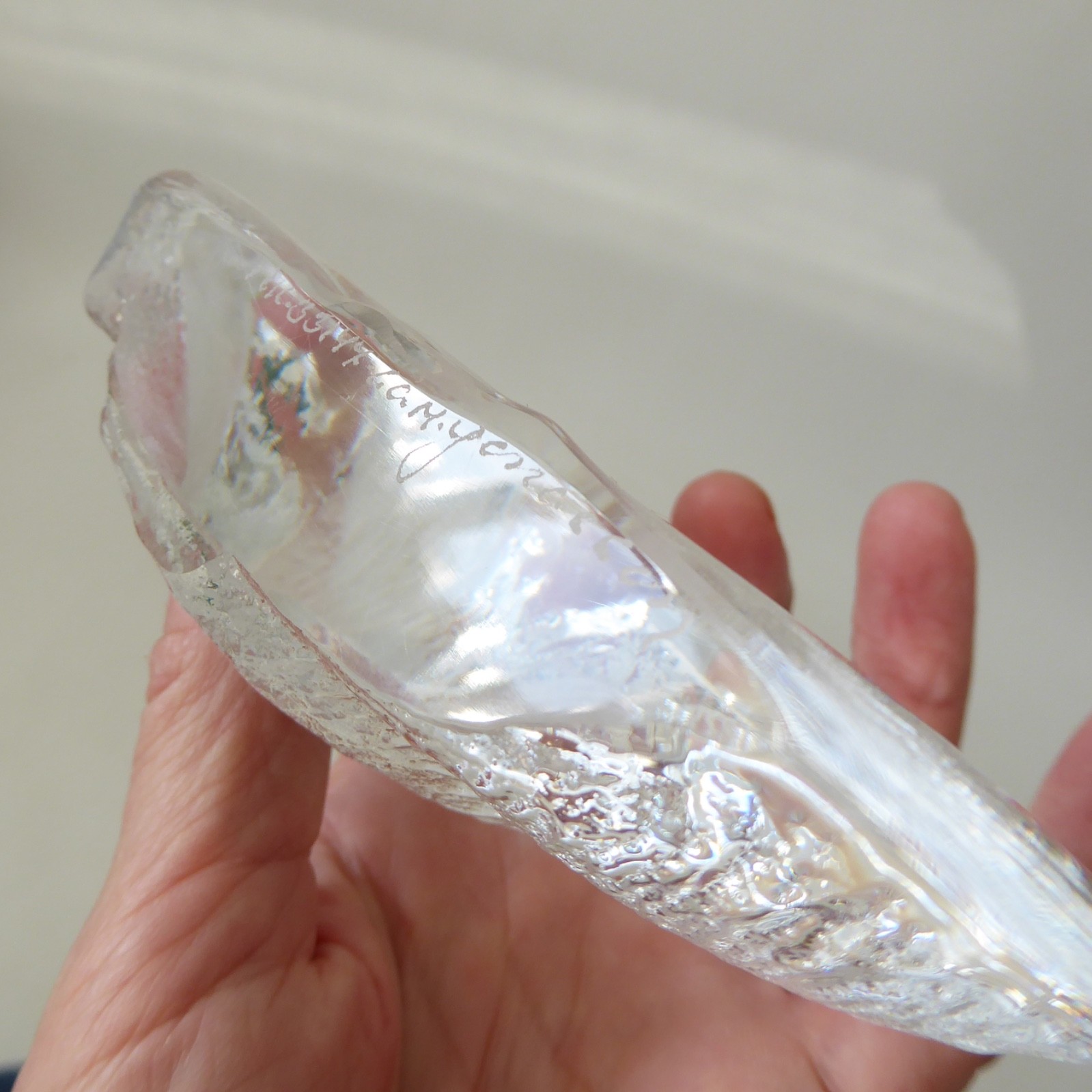 Image is etched/frosted and moulded to the front, with flat back.