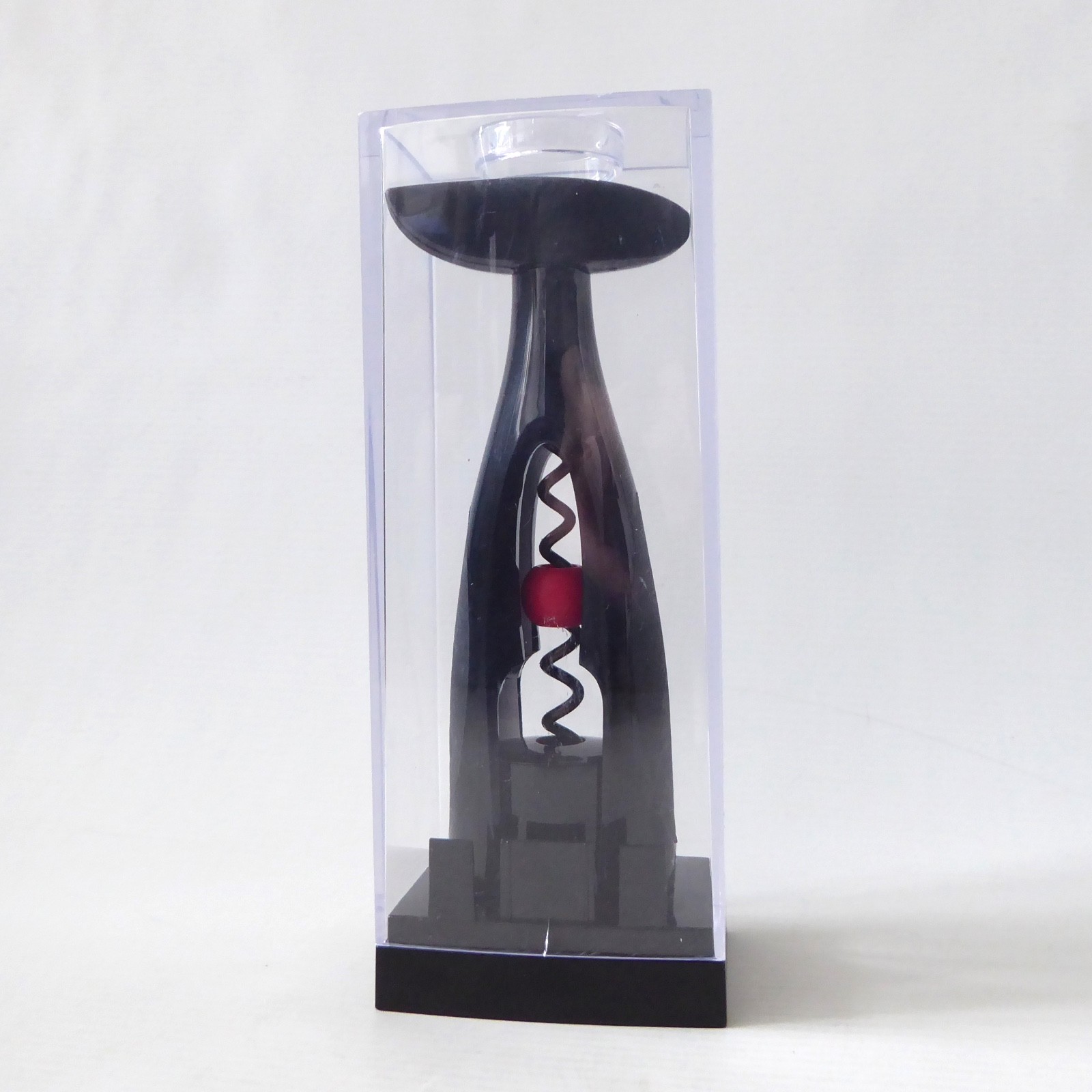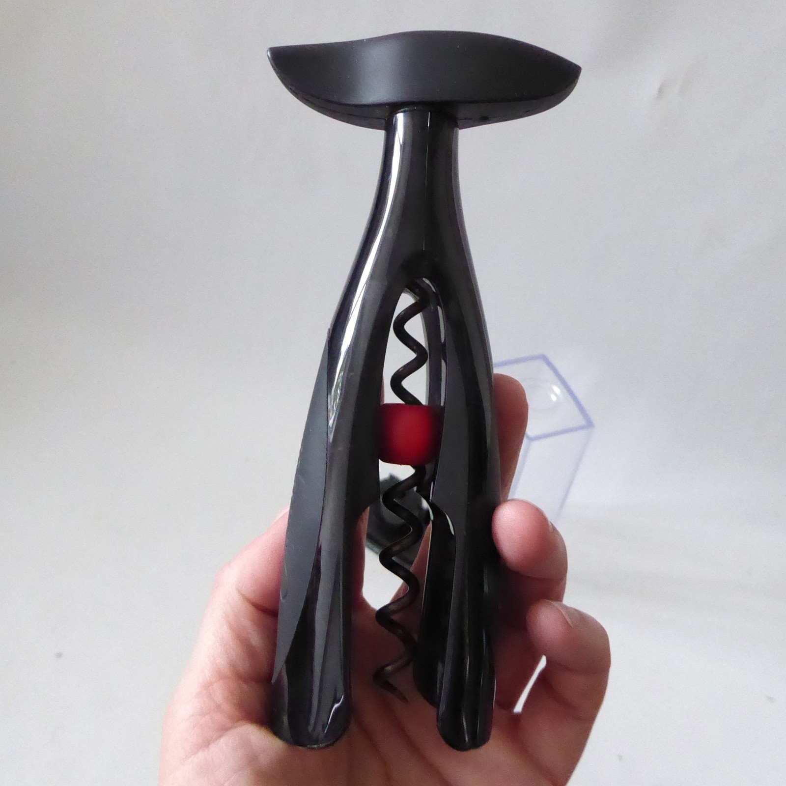 Matt and shiny black plastic with red ball. Steel corkscrew.