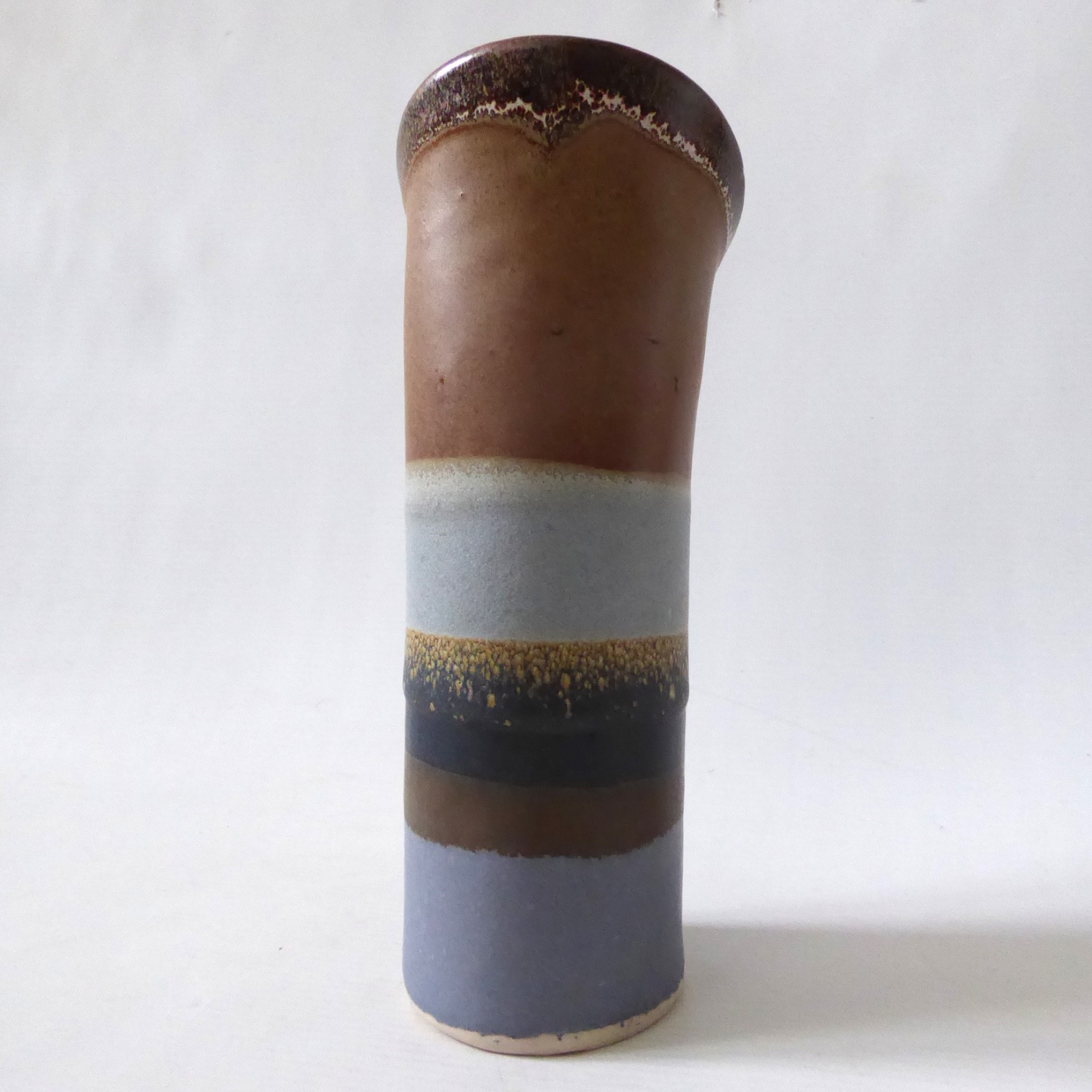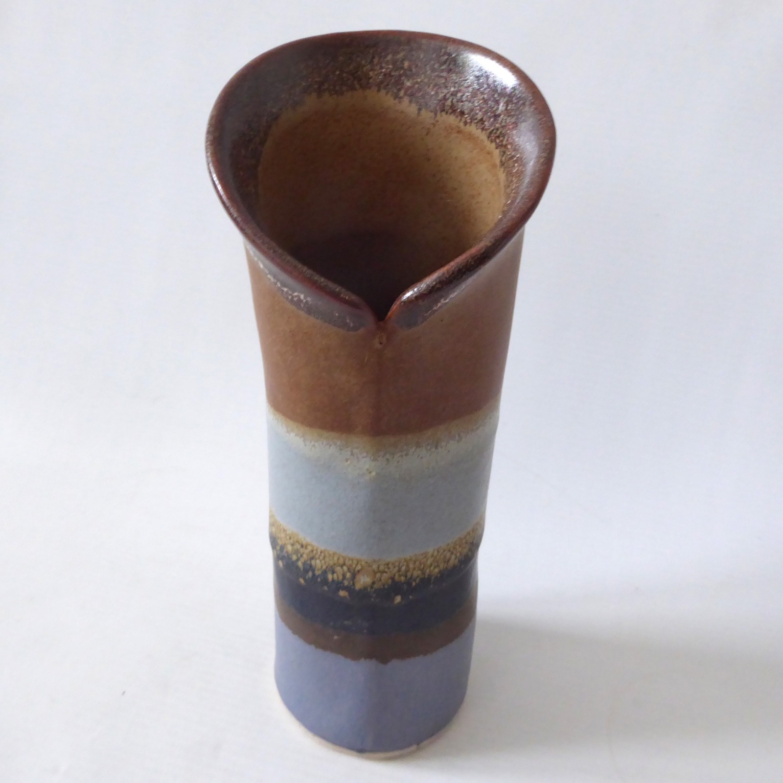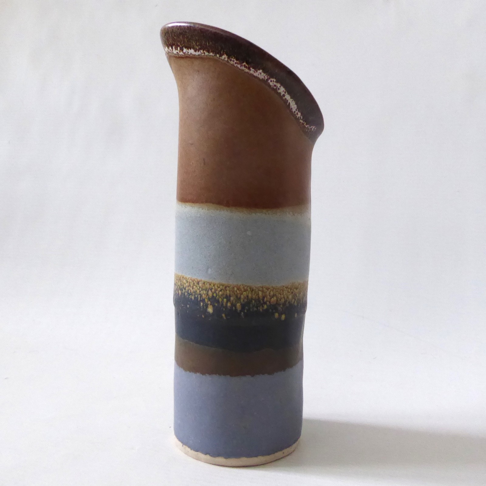 Nicely glazed in browns and blues with horizontal stripes in different tones and finishes.