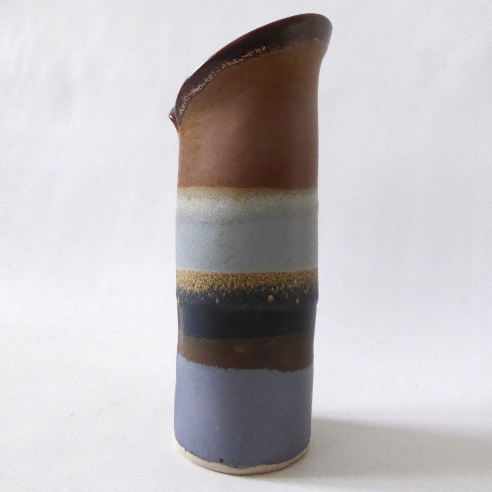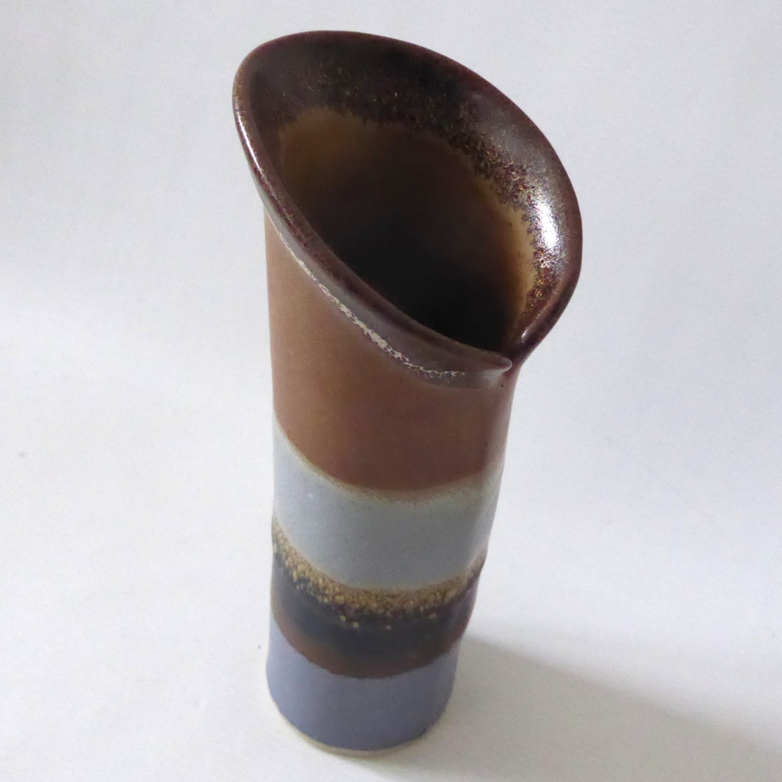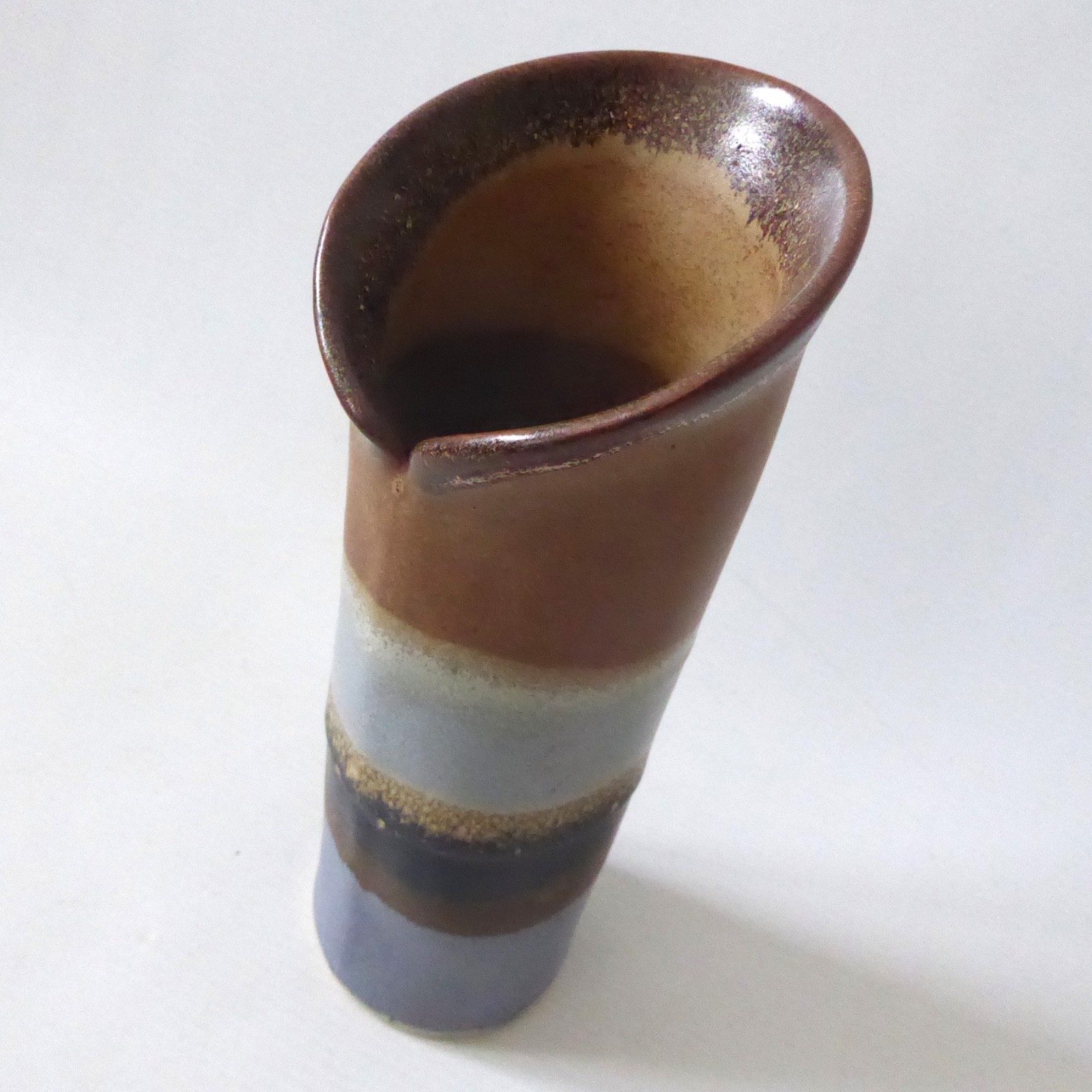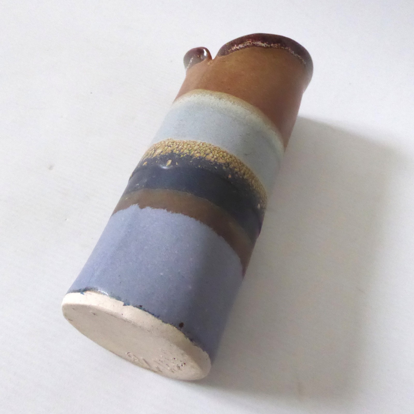 Nicely glazed in browns and blues with horizontal stripes in different tones and finishes.