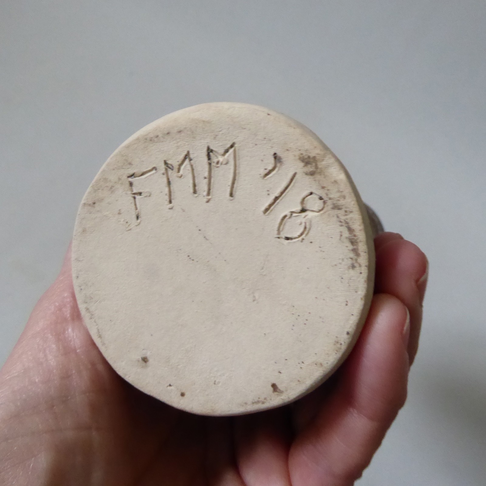 It’s a pale clay/pottery vase, slab built (rolled out) and handmade.