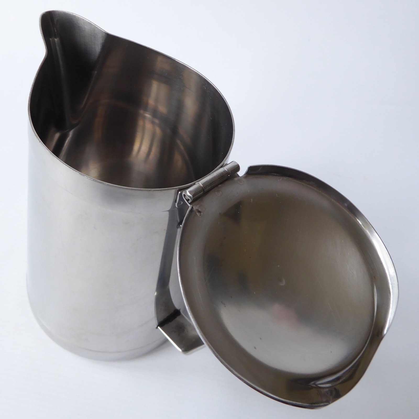 Slightly tapering shape with good hinged lid and good pouring spout.