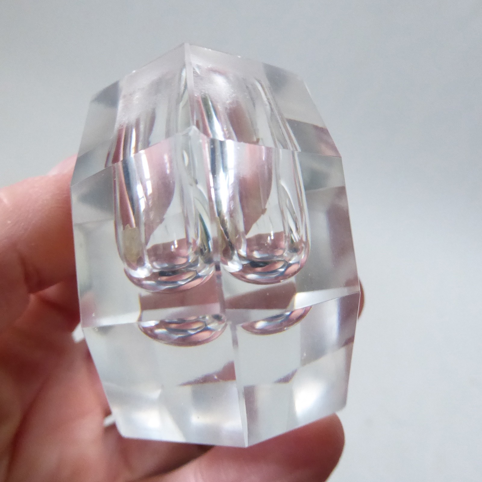 A hexagon shape with diamond shape facets, all flat polished faces.