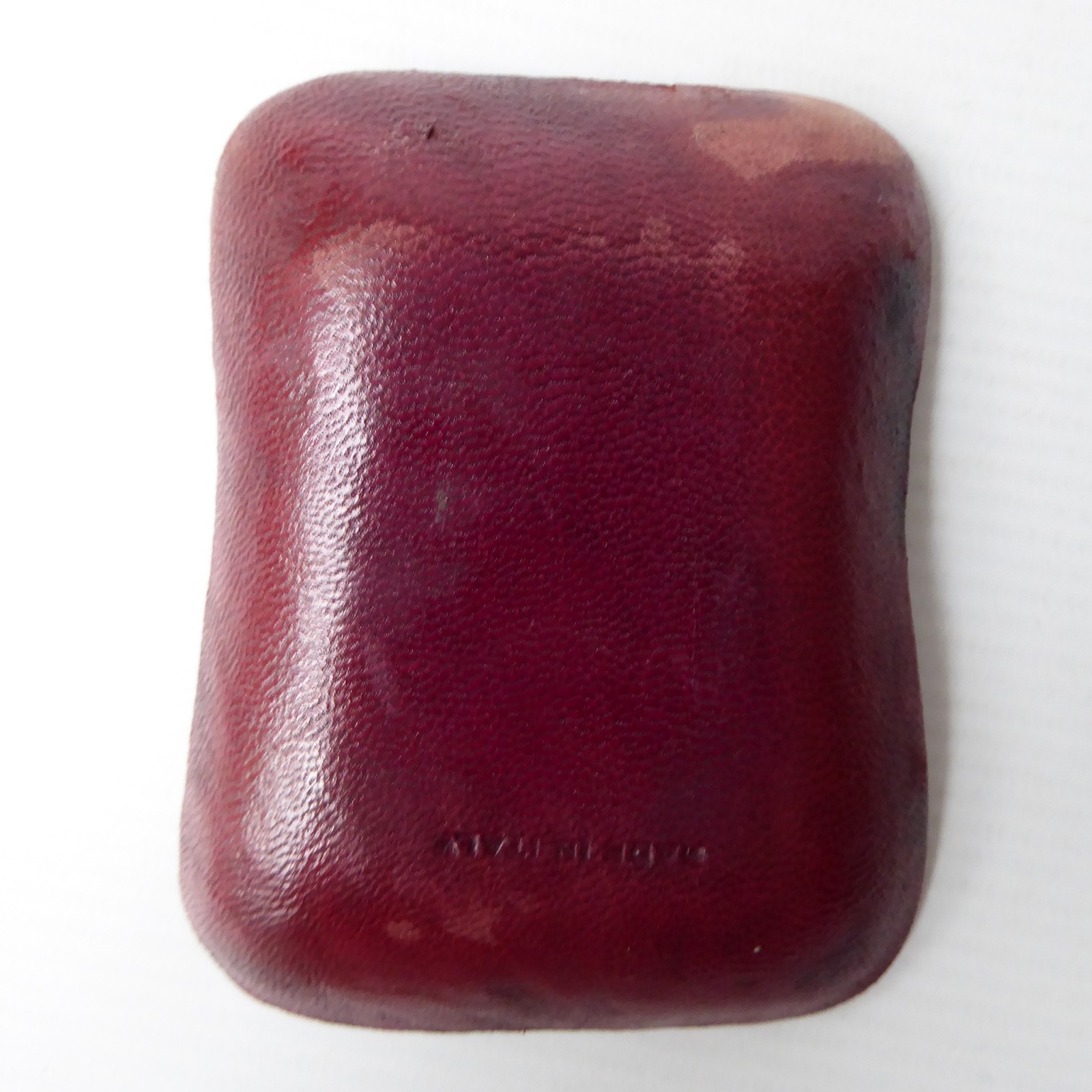 The red leather backing is a bit frayed to the edges and has got a bit dirty/faded.