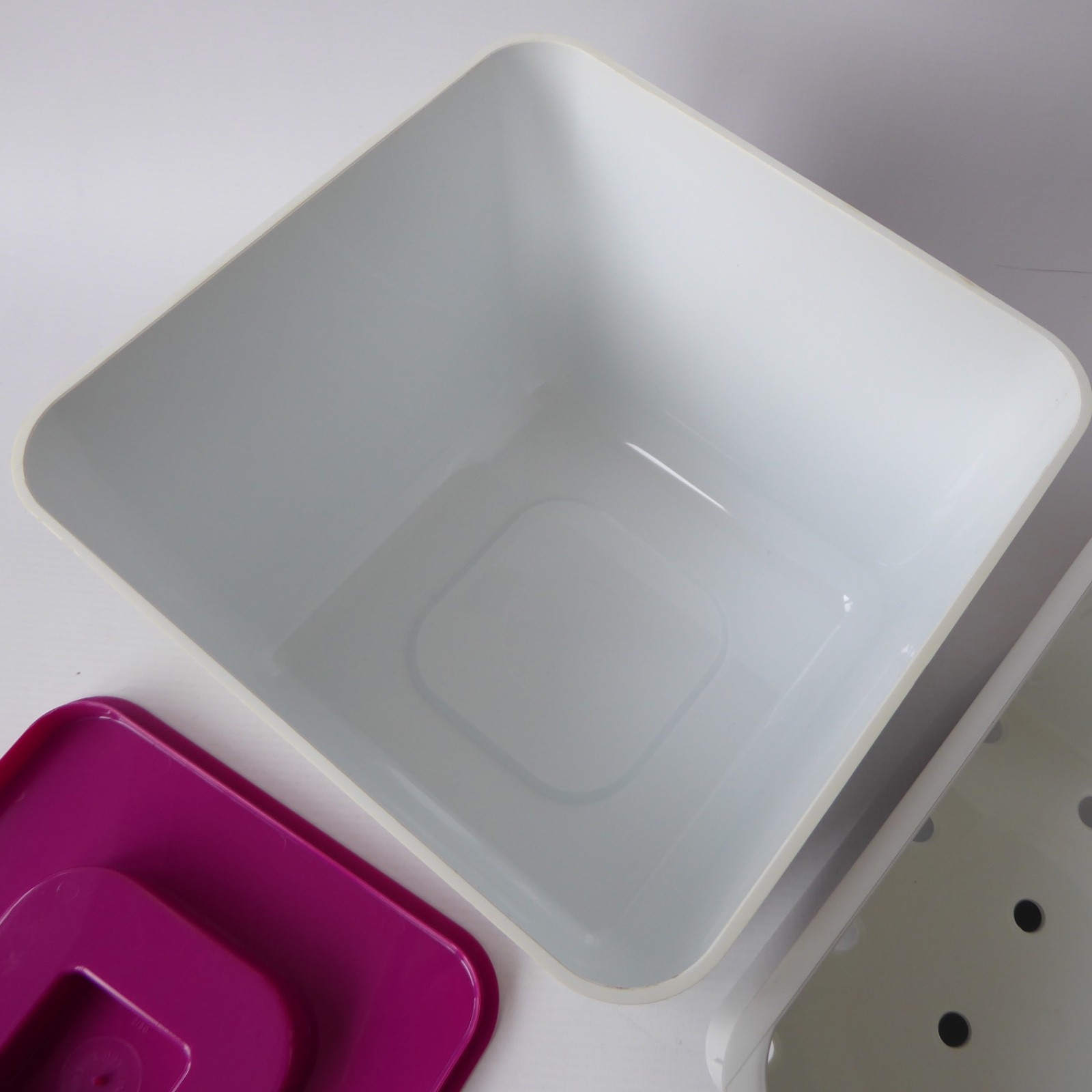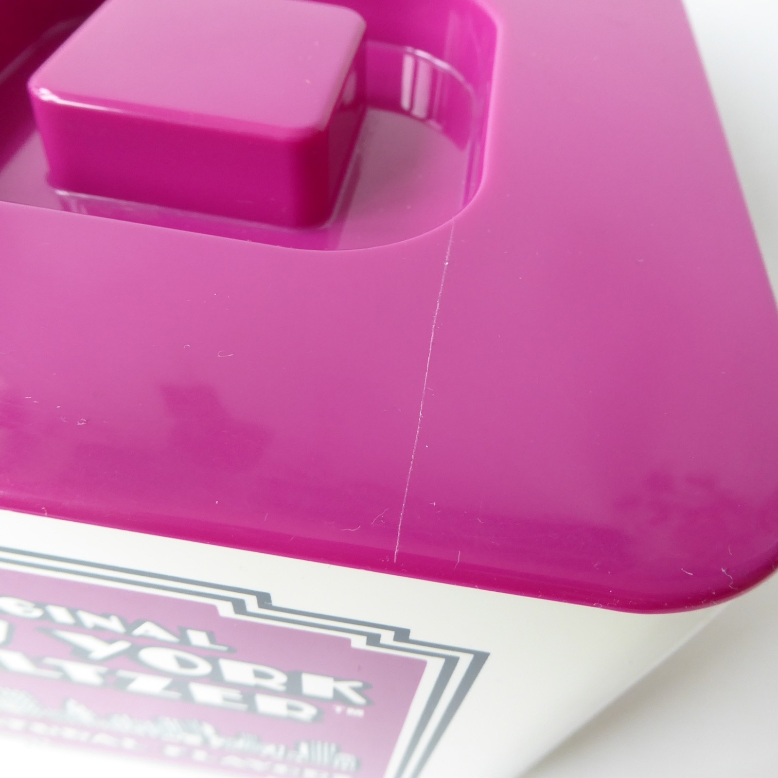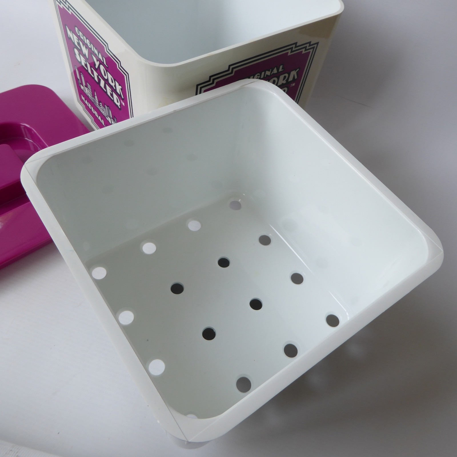 A large white and magenta (deep vibrant purply pink) ice bucket from the 1980s or so.