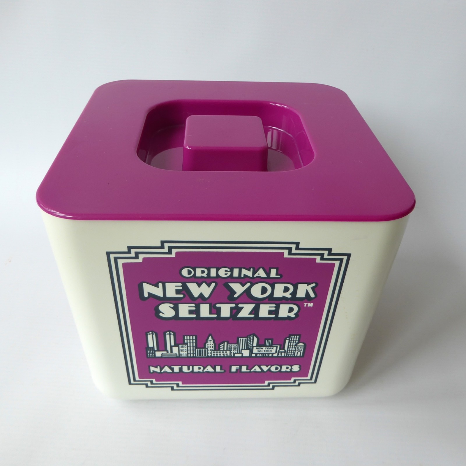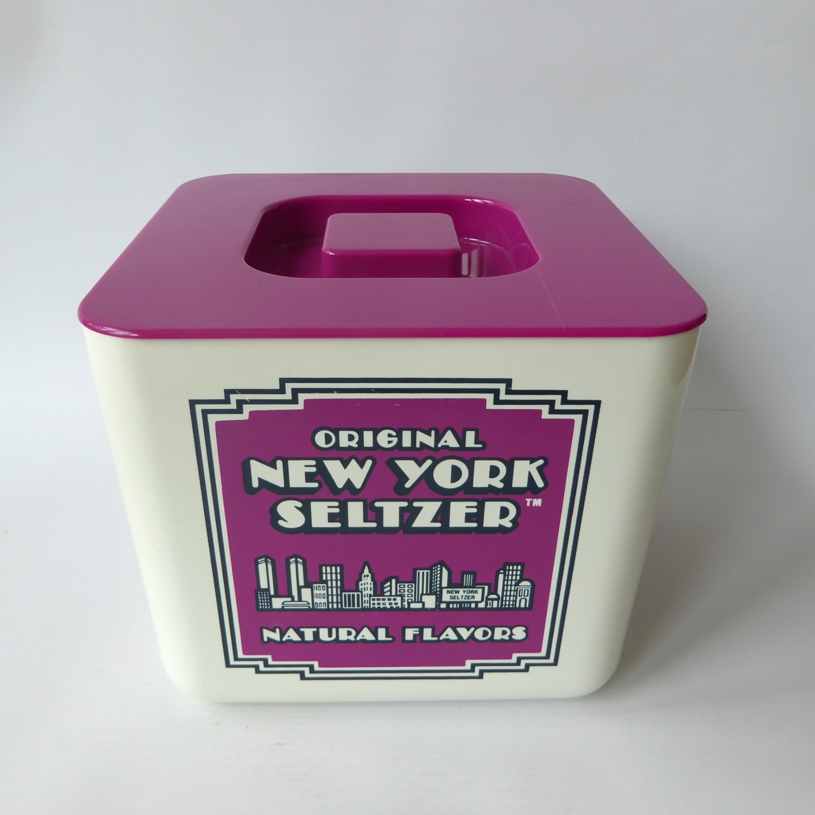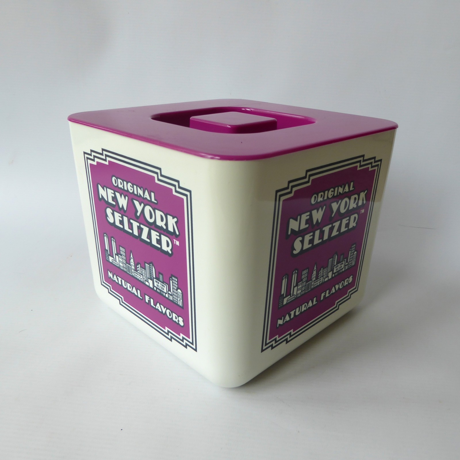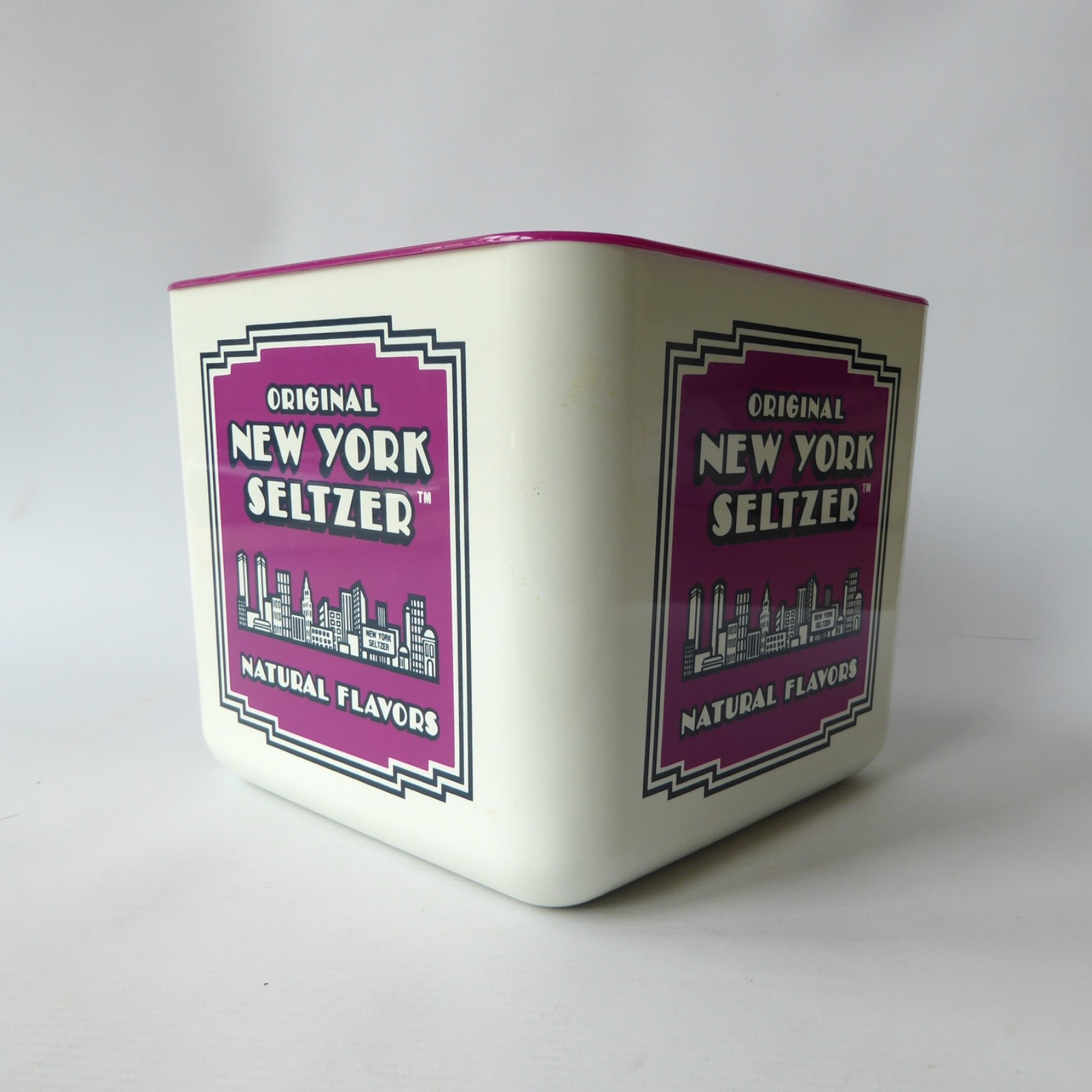 The square ice bucket has an Art Deco style motif to each side advertising the ‘Original New York Seltzer, Natural Flavors’.