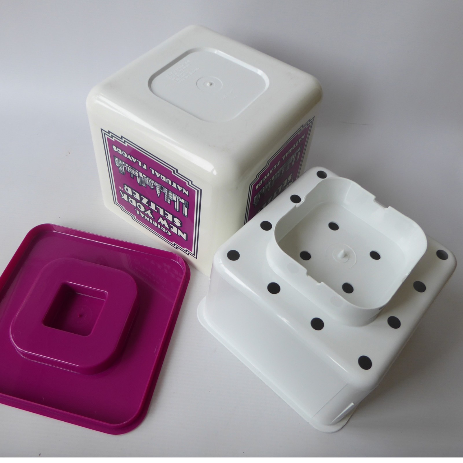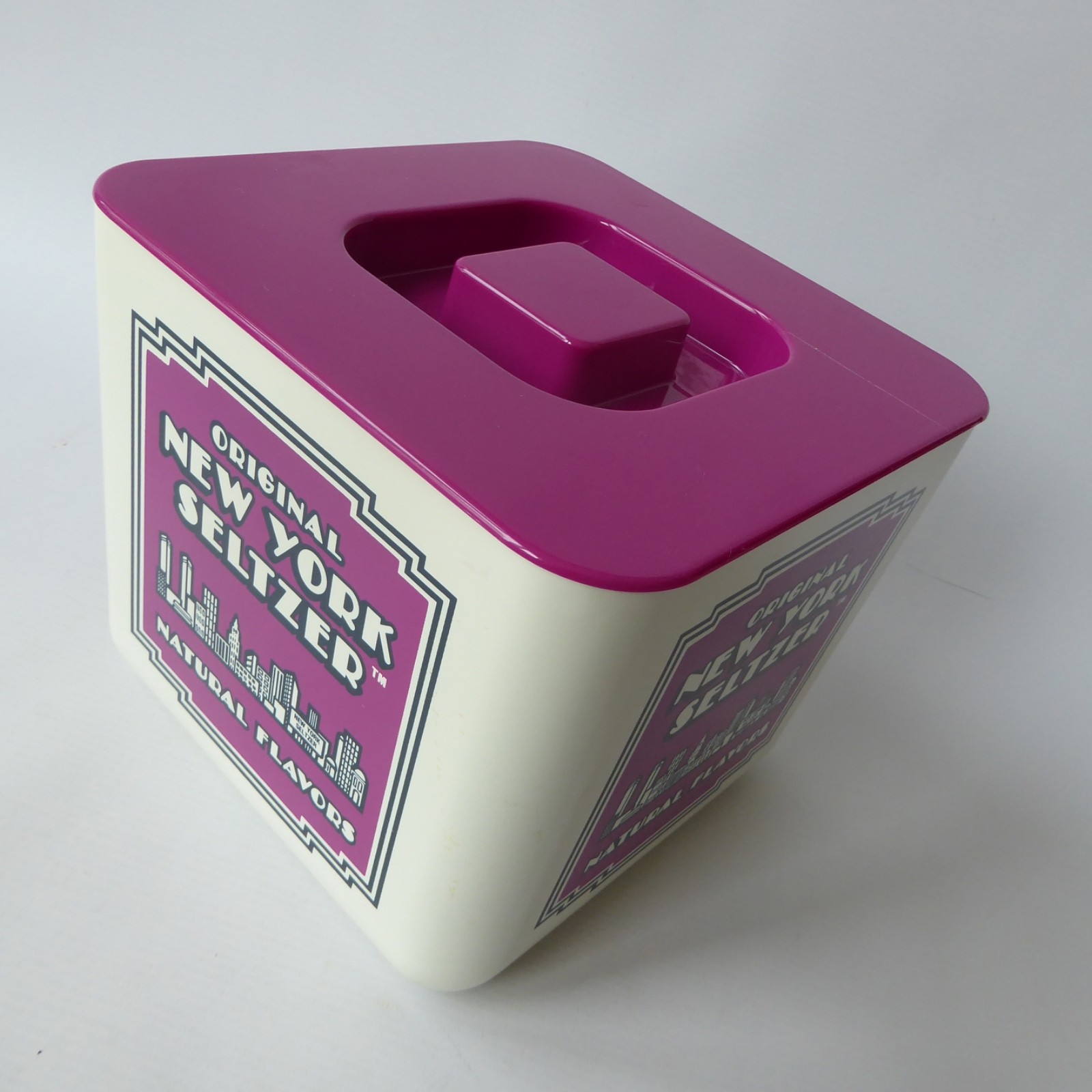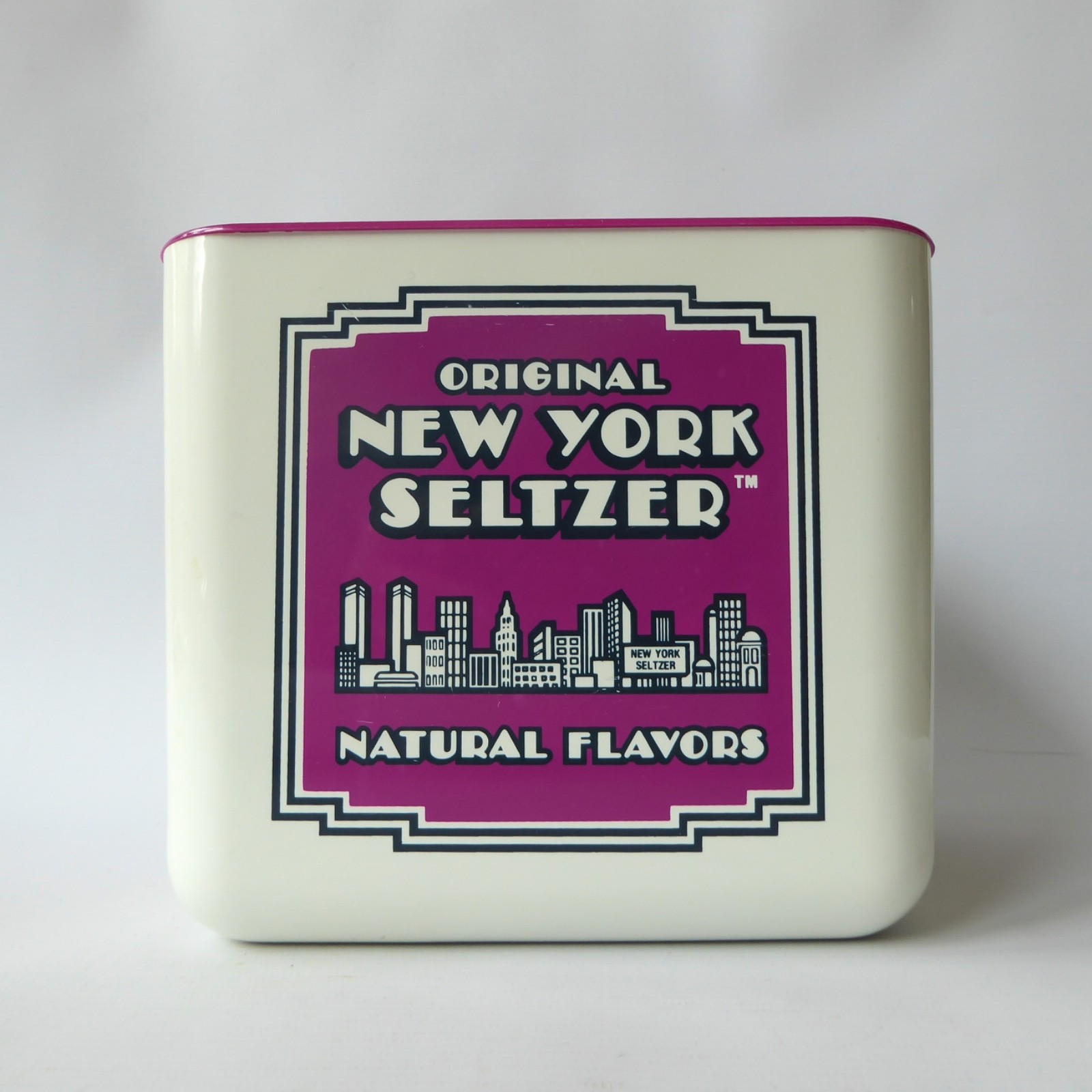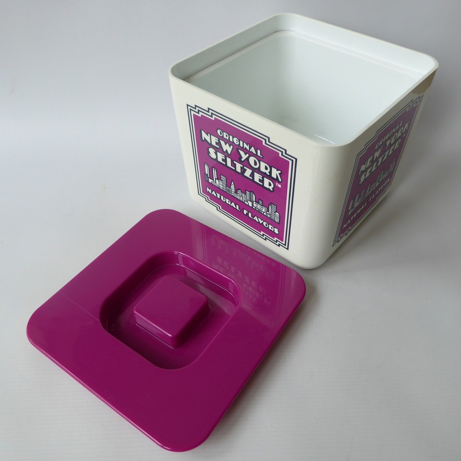 The square ice bucket has an Art Deco style motif to each side advertising the ‘Original New York Seltzer, Natural Flavors’.