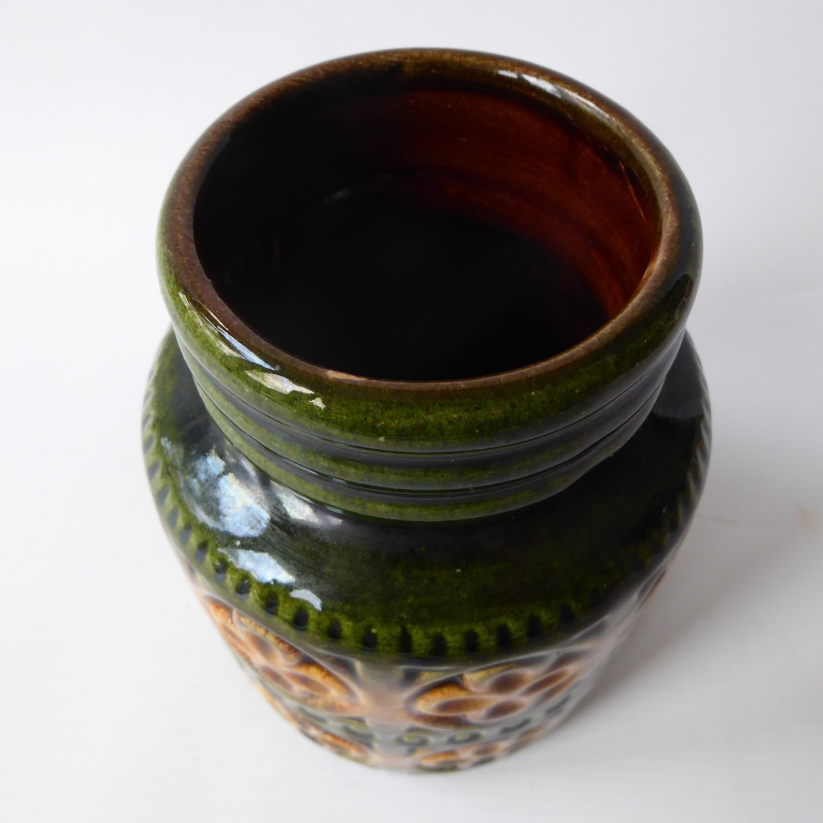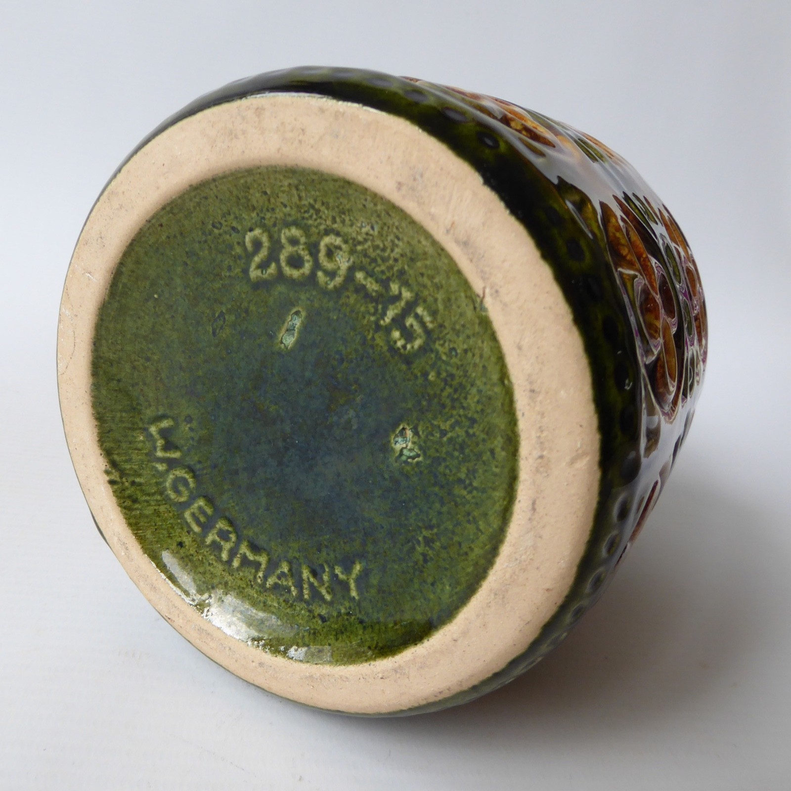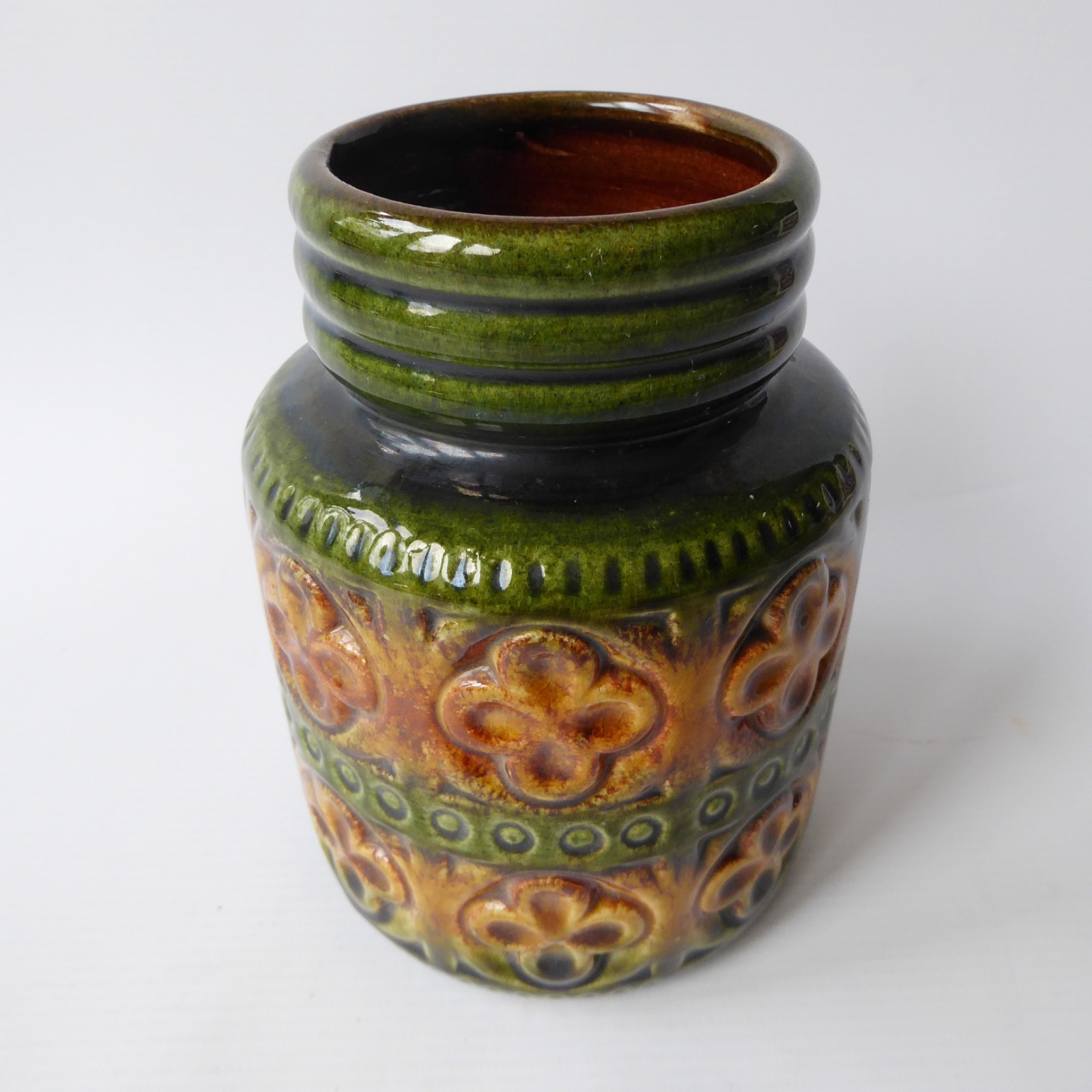 West German Scheurich vase 289-15 deep green/ochre stripes Vintage 60s/70s retro
